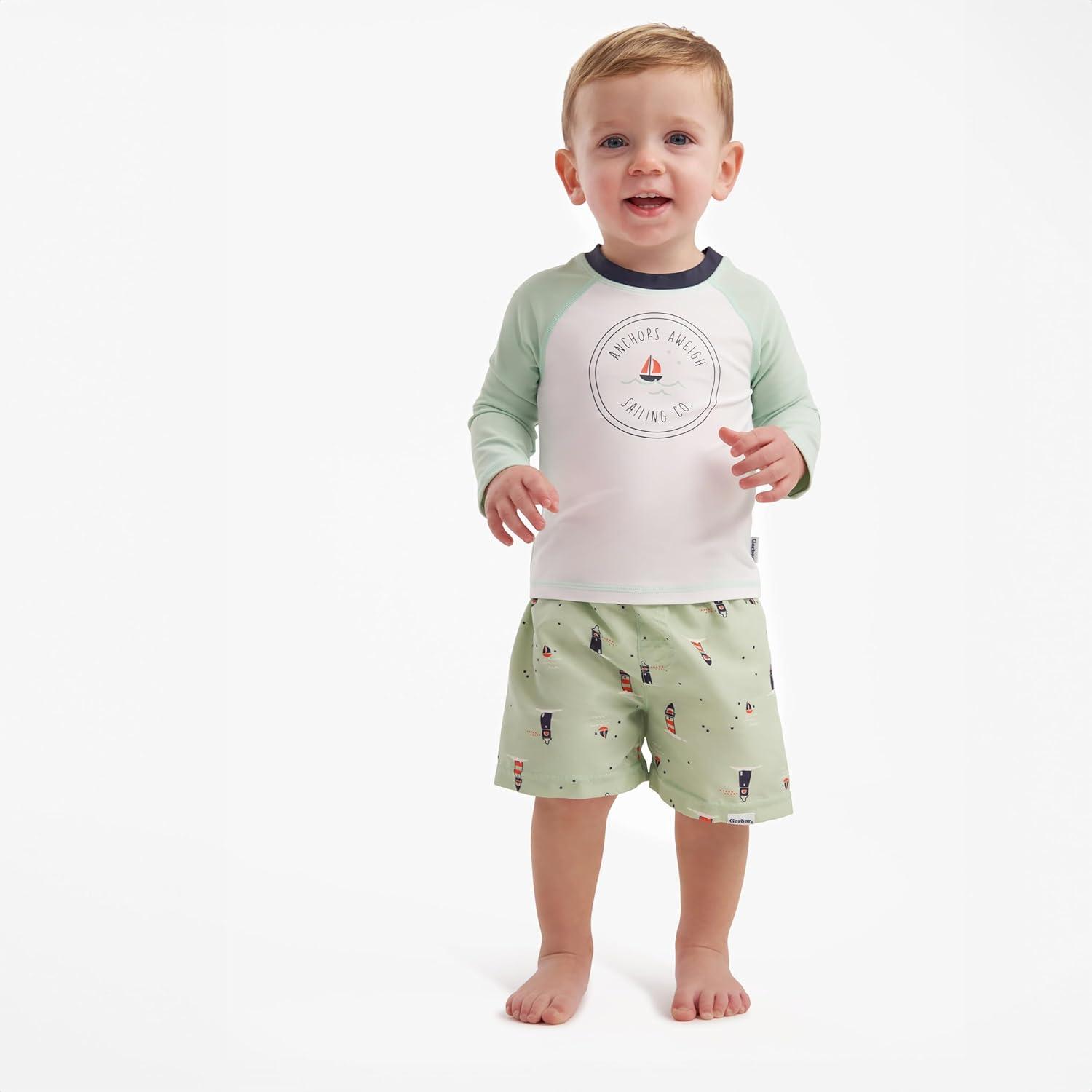 Get ready for a summer of water fun! This versatile two-piece combo includes matching bottoms and a protective rashguard, so your little one can gear up for a season brimming with water adventures. Whether it's family trips or home-based fun, this set is tailor-made for those sunny, joyful days. Crafted from UPF 50+ material to ward off harmful sun rays and featuring a design that naturally resists skin irritation, your little one can delight in endless fun in safety.