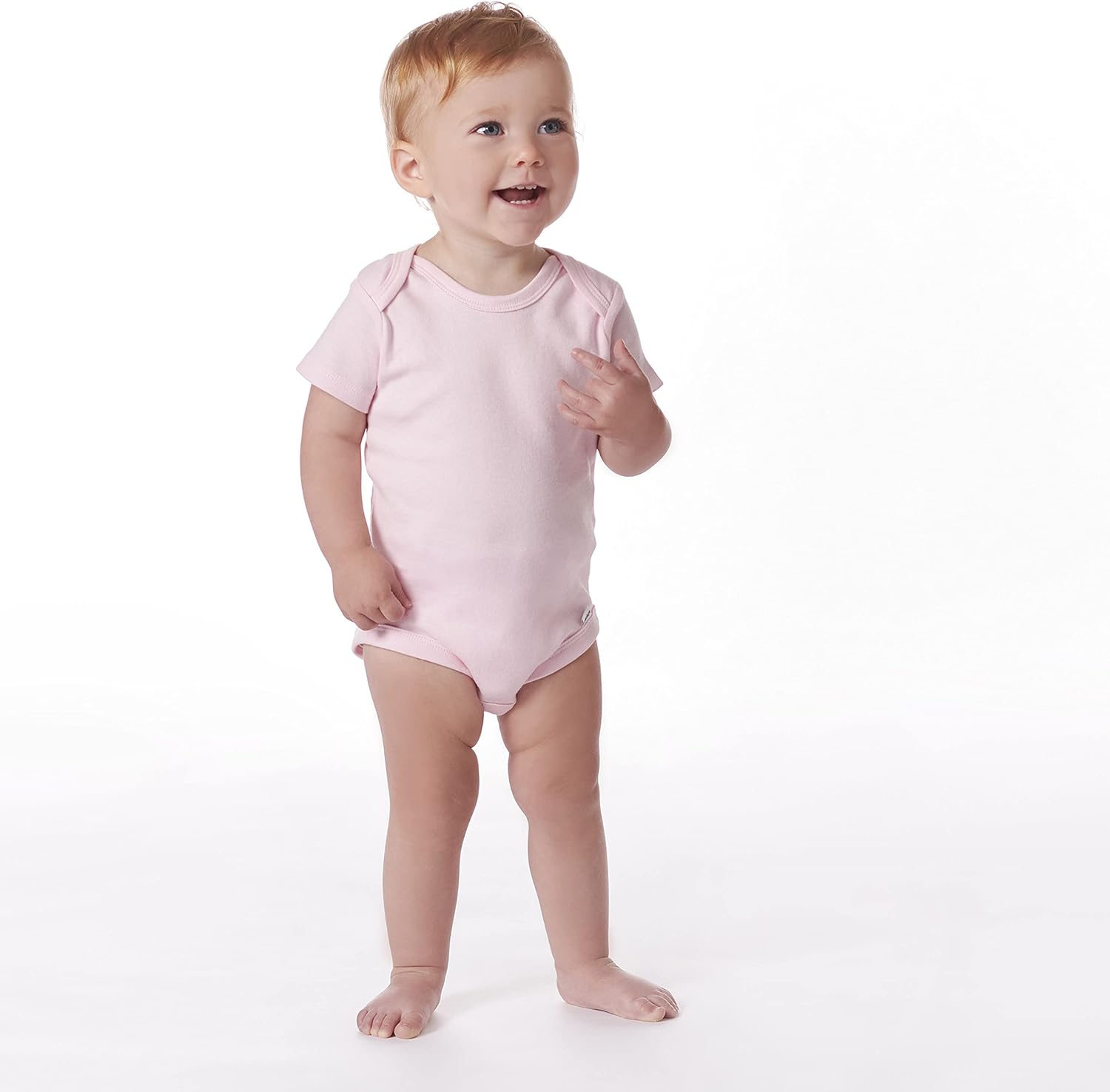 Designed for easy changes with expandable lap shoulder necklines & two high-positioned bottom snaps