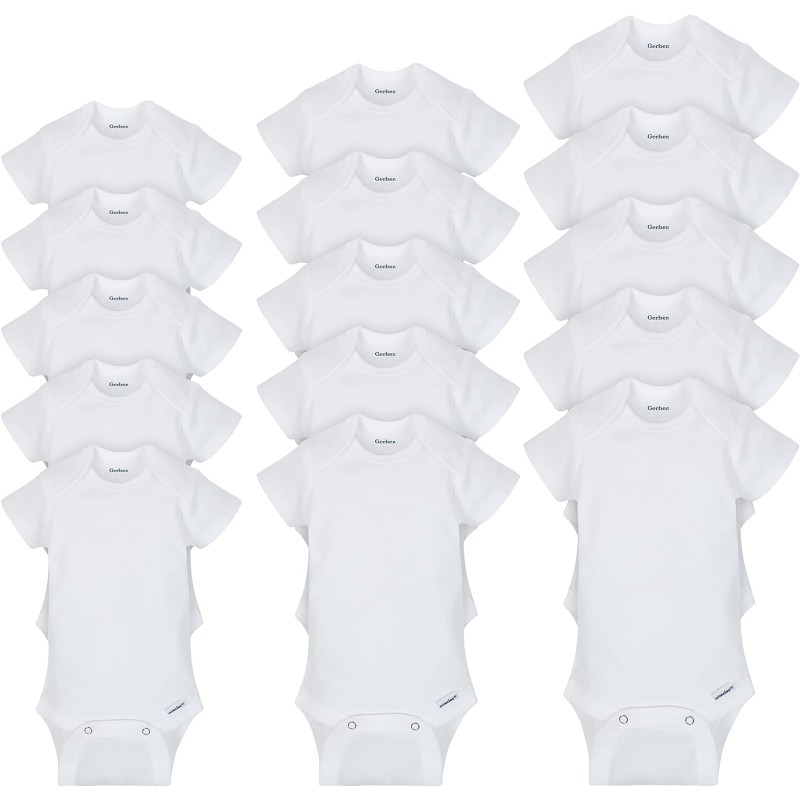 Gerber Baby 15 Pack Onesies Multi-packs Bundle Interlock 180 Gsm(White)