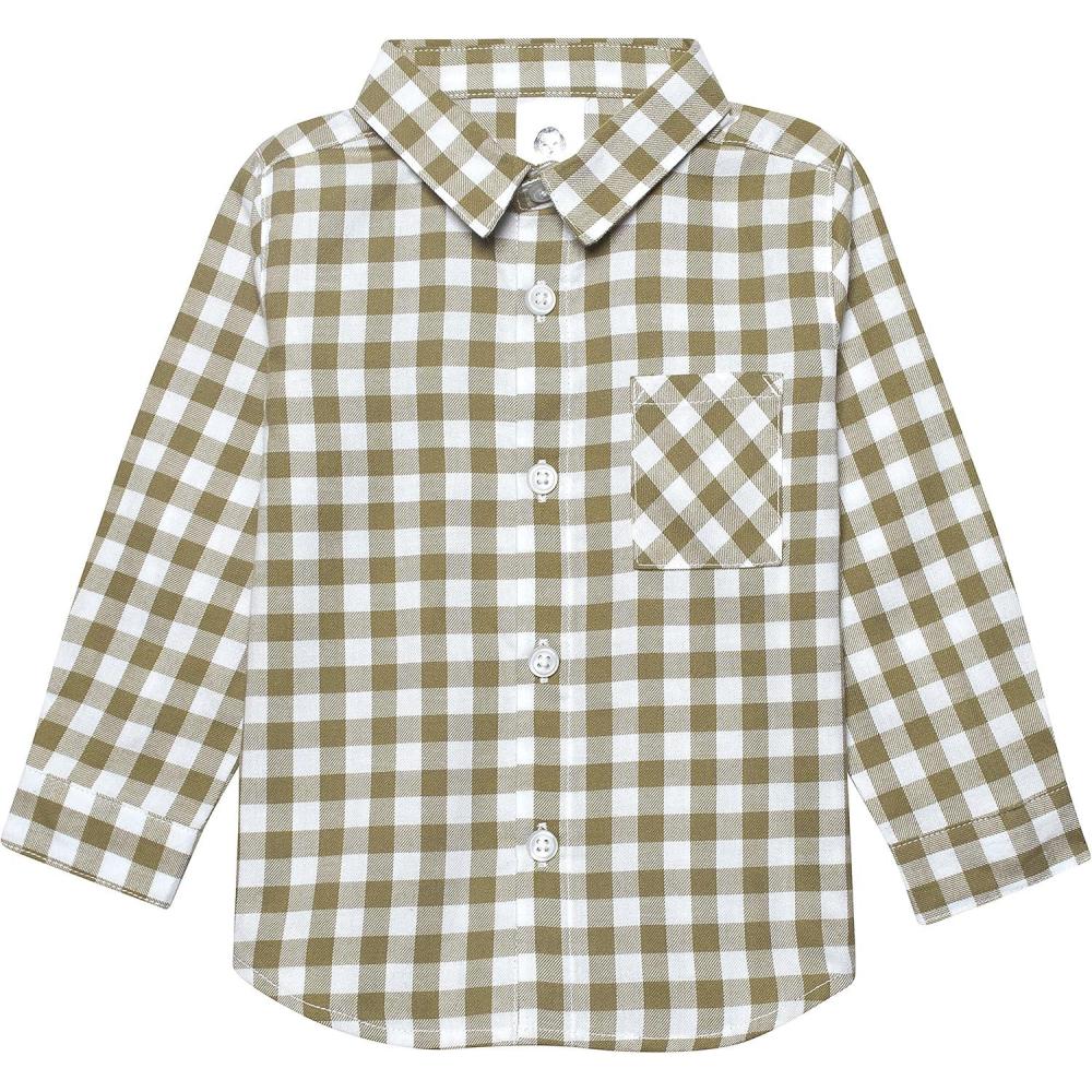 Gerber Baby and Toddler Boys Long Sleeve Button Up Plaid Shirt(Tan Plaid)