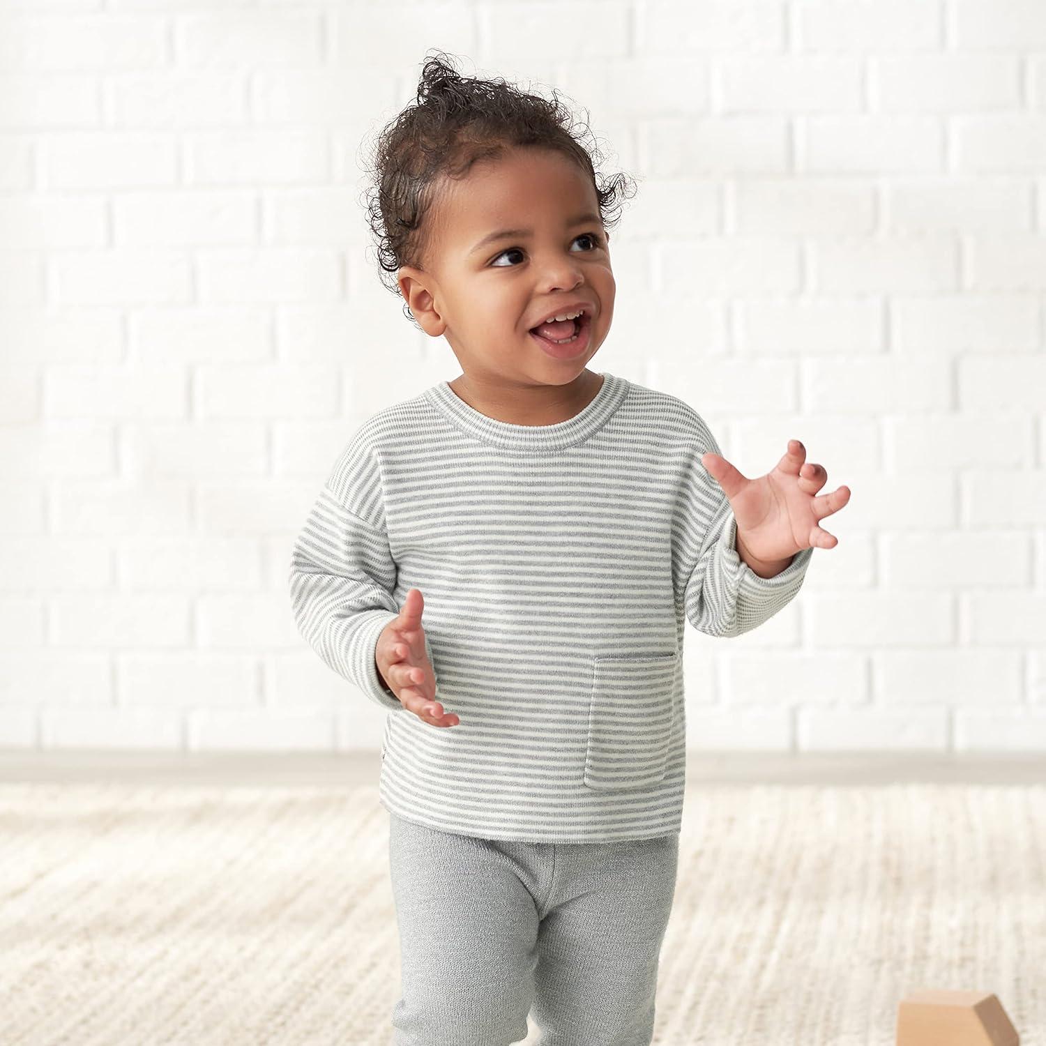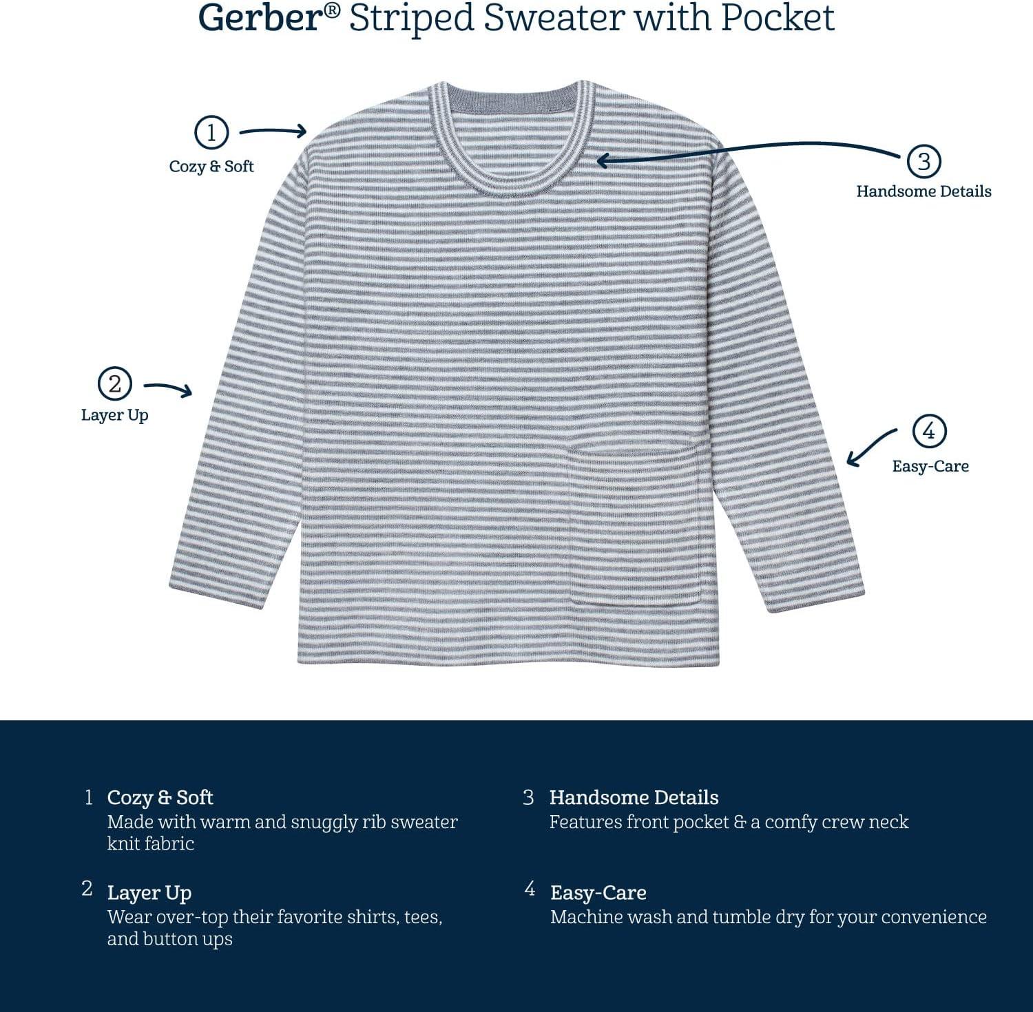 Gerber Baby and Toddler Boys Striped Sweater with Pocket(Gray Heather)