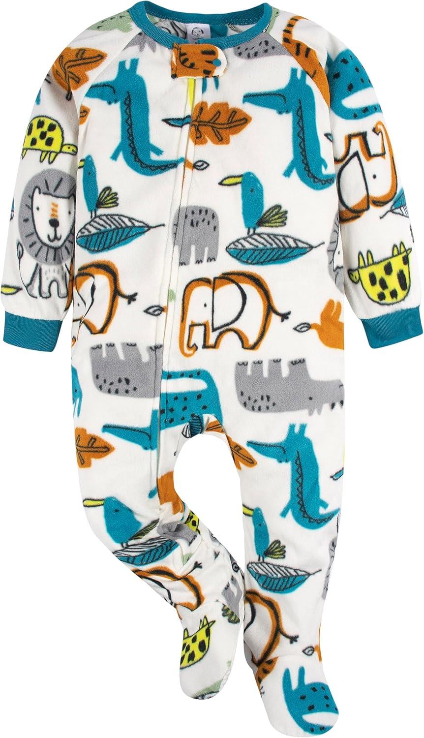 Wrap your little man in cozy comfort with this 2-pack of boy's microfleece footed blanket sleepers by Gerber. He'll wake up each morning refreshed and ready for action dressed in one of these sleepers. When it comes time for dressing or changing, the neck-to-calf zipper makes things simpler for mom. For sizes 6-24 months, a covered zipper tab prevents a rough zipper pull from irritating his delicate skin. These Sleepers also won the Parent Tested Parent Approved Seal; the seal of approval helps you identify products that have been tested and recommended by North America's largest parent testing community. This microfleece footed blanket sleeper is made from flame resistant fabric, keeping him safe while he rests. When laundry day comes around, mom will appreciate the easy care fabric that makes for no-fuss cleaning. Your little one will love the cheery colors and fun prints featured in this set. Send him off to bed with a smile on his face each night Perfect for a mom looking to stock up on a baby essential item or as a gift idea for a special mom or mom-to-be