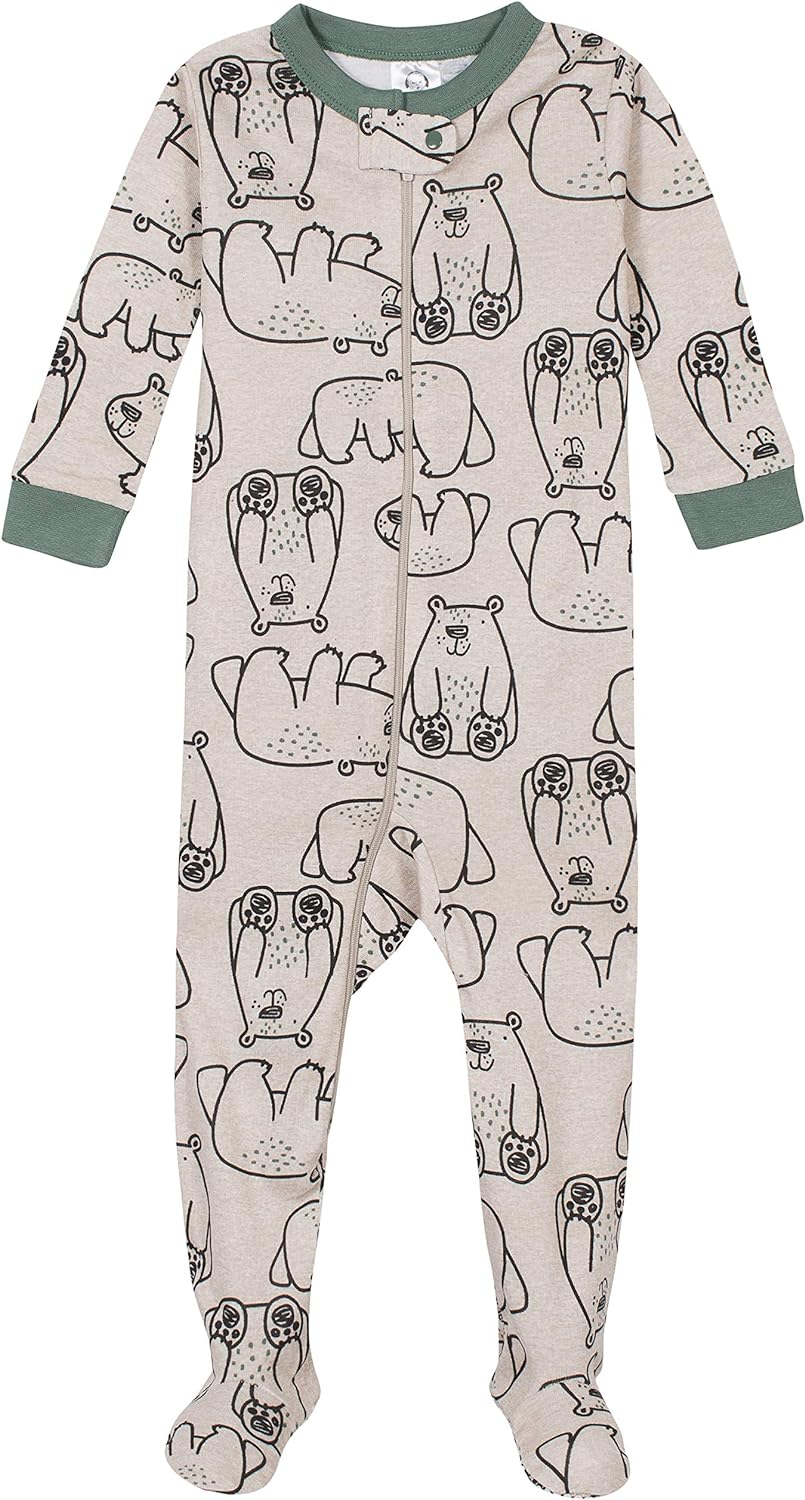 Gerber Baby Boys’ 2-Pack Footed Pajamas(Bear Green Stripes White)