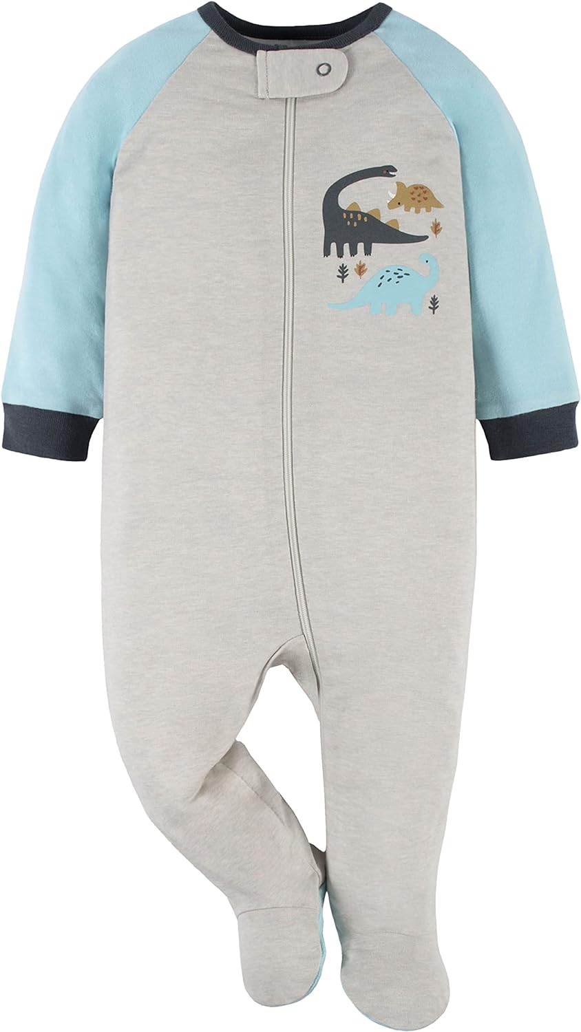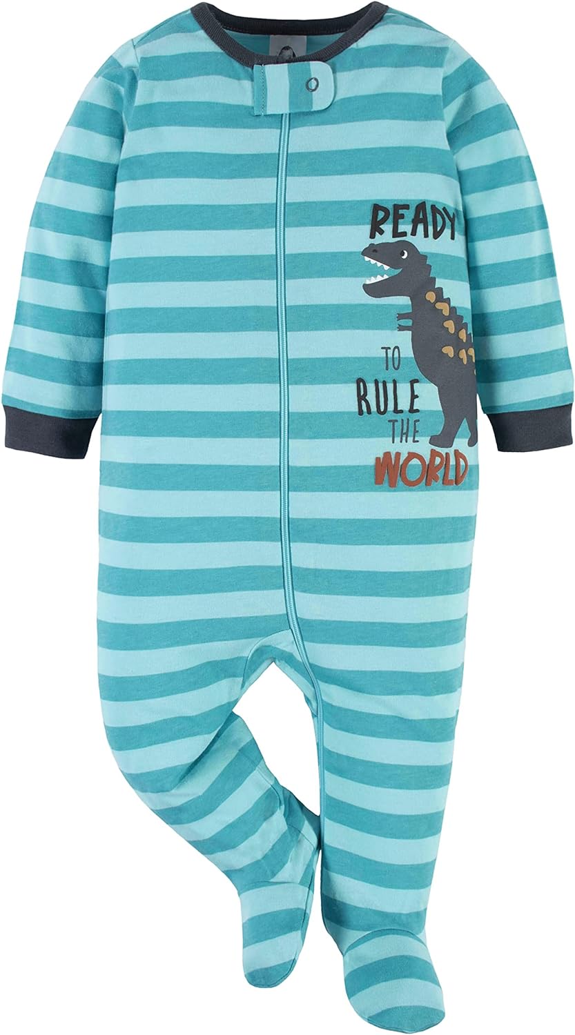 Gerber Baby Boys’ 2-Pack Footed Pajamas(Blue Ready Dino and Dinos)