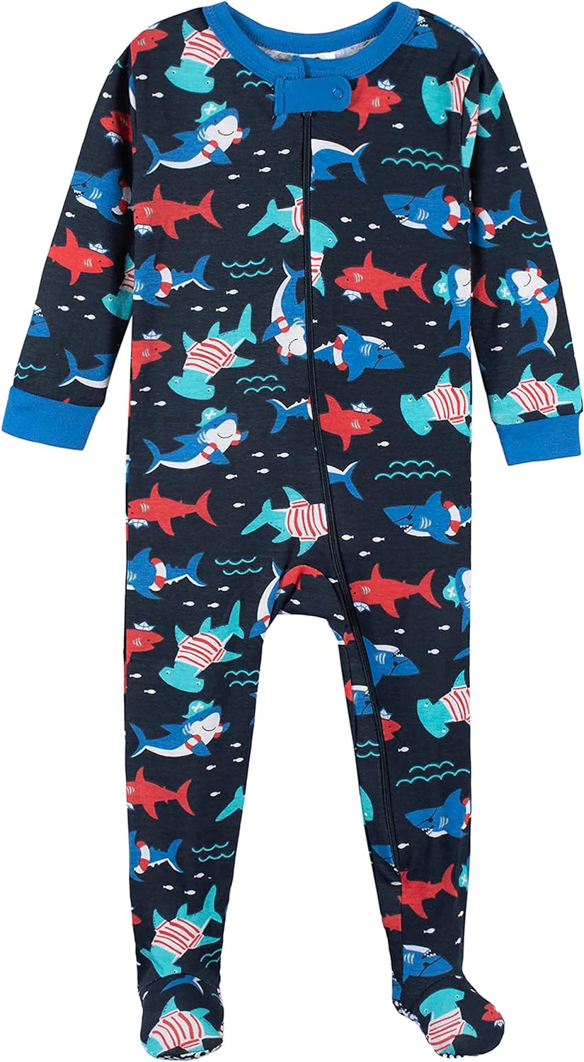 Gerber Baby Boys’ 2-Pack Footed Pajamas(Blue Sharks)