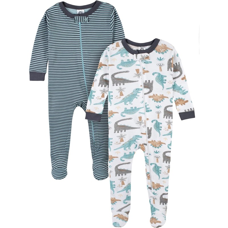 Gerber Baby Boys’ 2-Pack Footed Pajamas(Dinosaurs Blue)