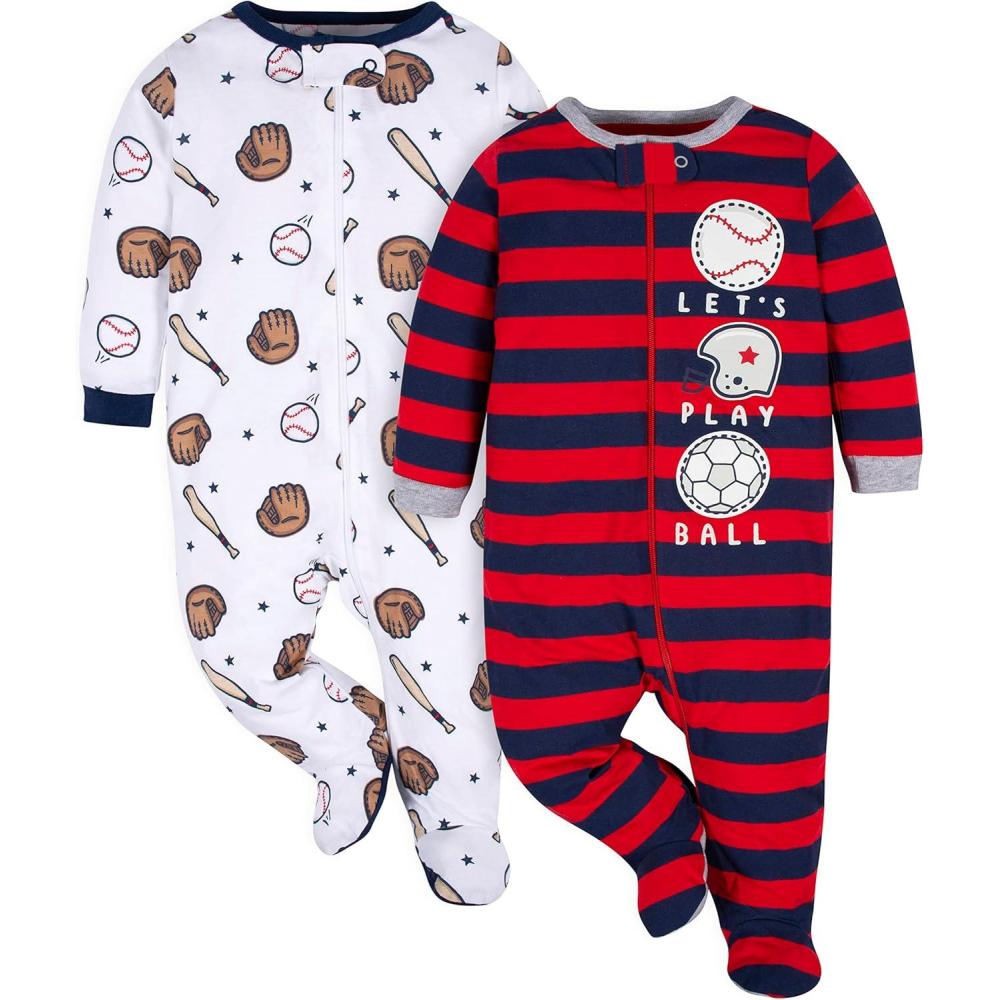 Gerber Baby Boys’ 2-Pack Footed Pajamas(Sports Blue)