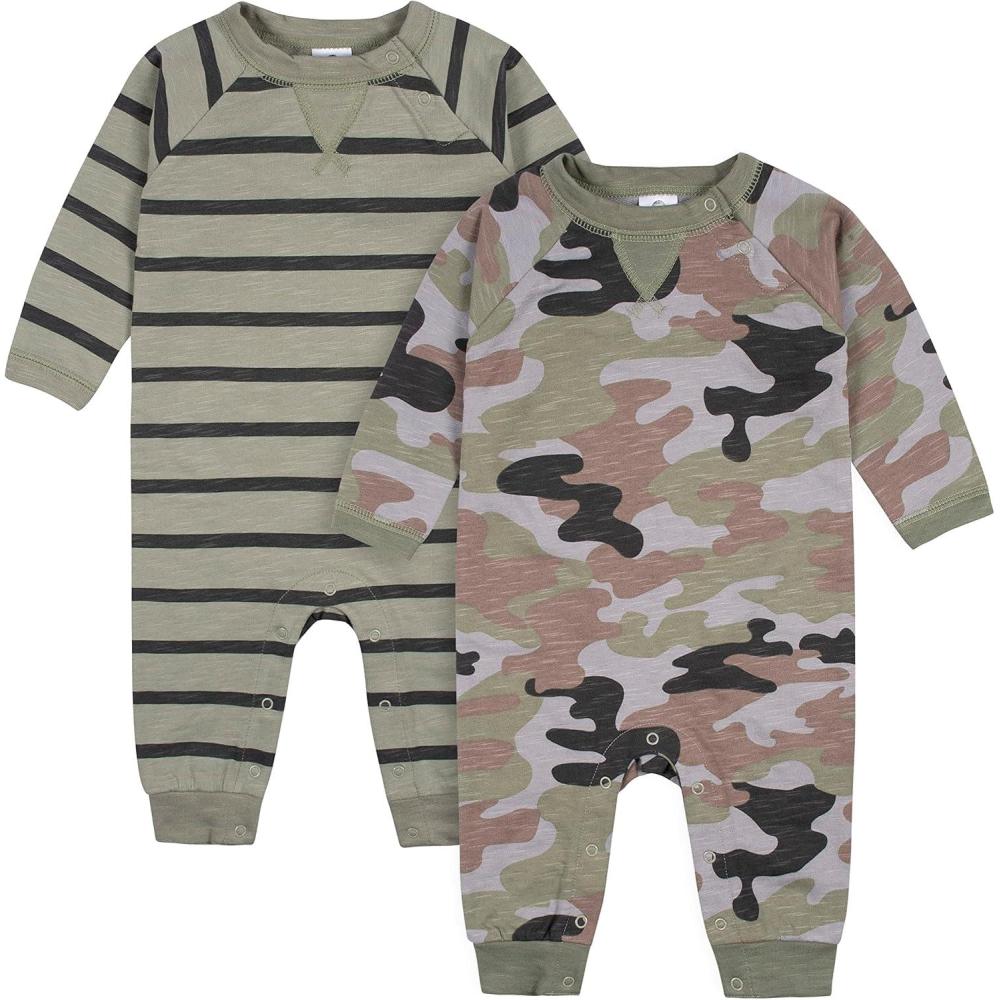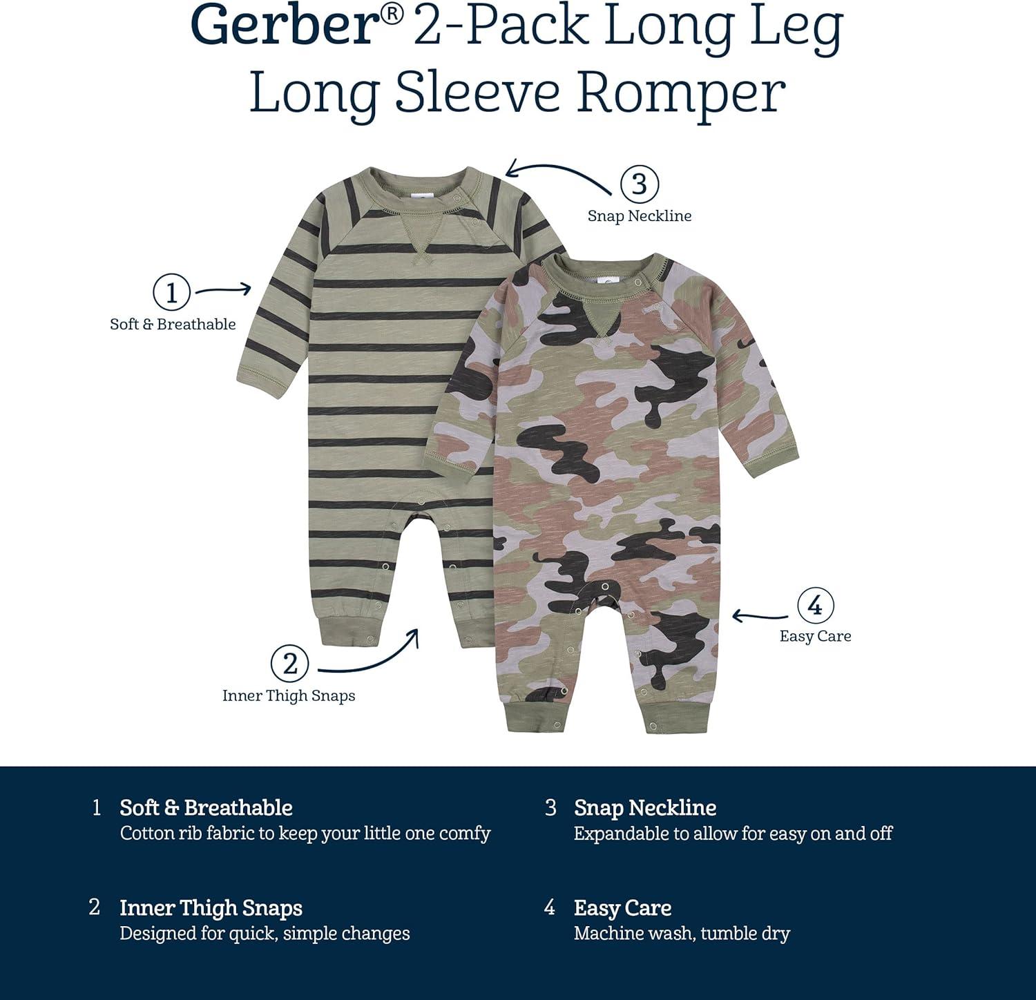 Gerber baby-boys 2-pack Long Leg RomperBaby and Toddler T-Shirt Set(Green)