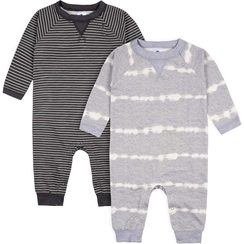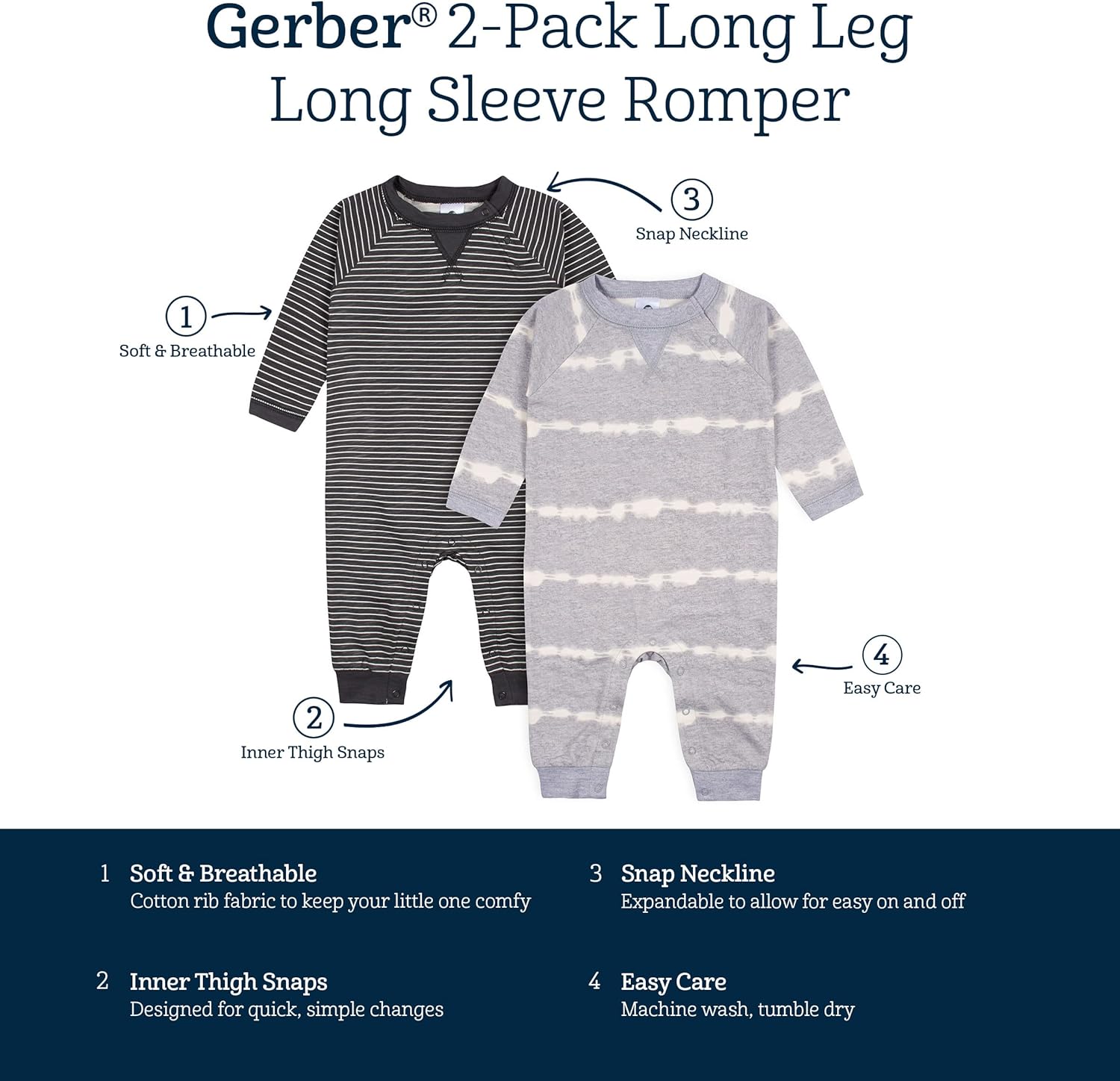 Gerber baby-boys 2-pack Long Leg Romper(Heather and Dark Grey)