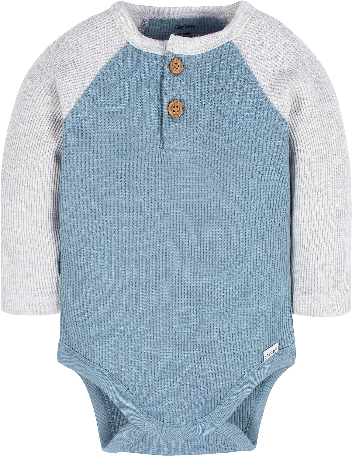 Gerber baby-boys 2-pack Long Sleeve Henley Onesies(Blue and Heather Grey)