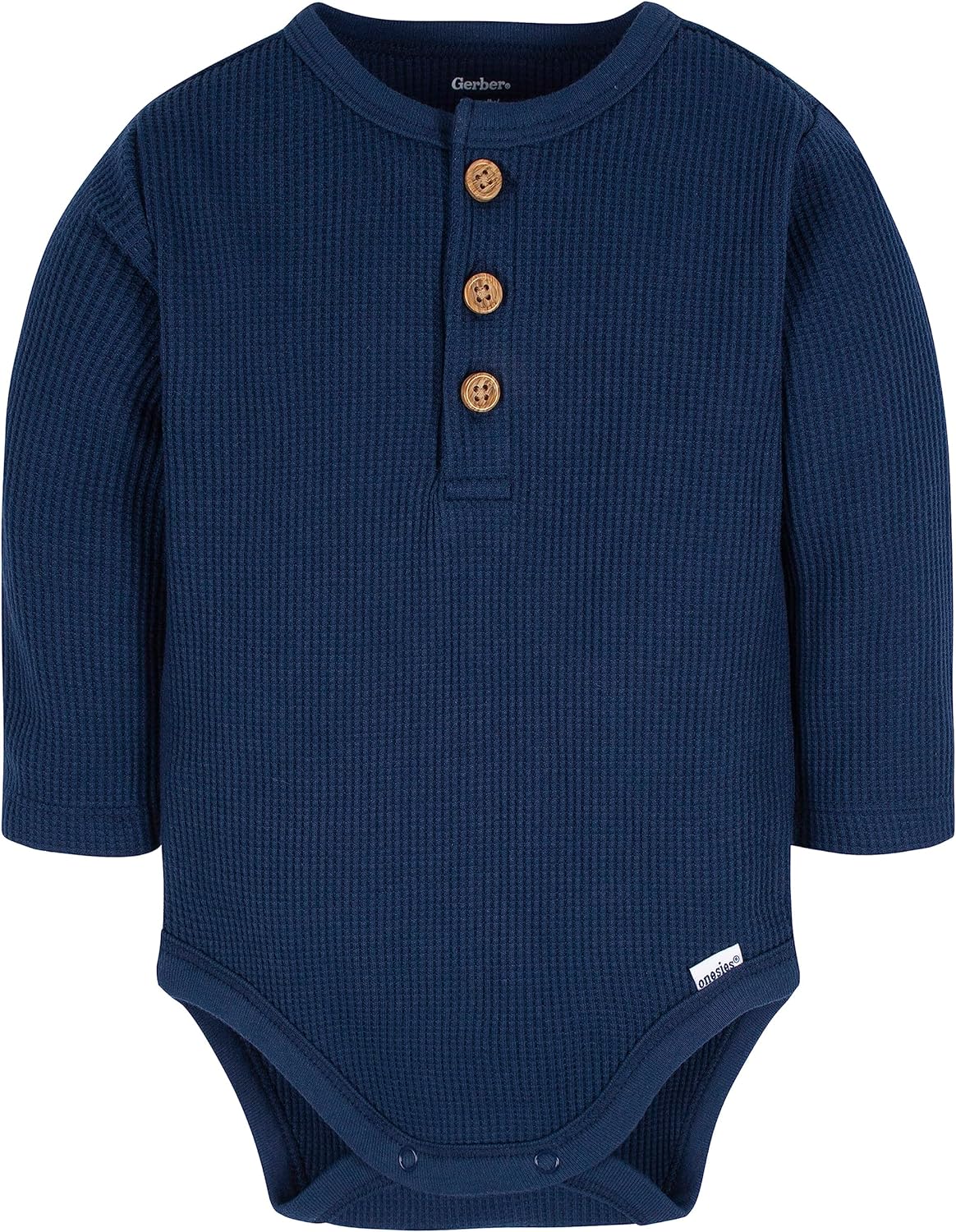 Gerber baby-boys 2-pack Long Sleeve Henley Onesies(Blue and Ivory)