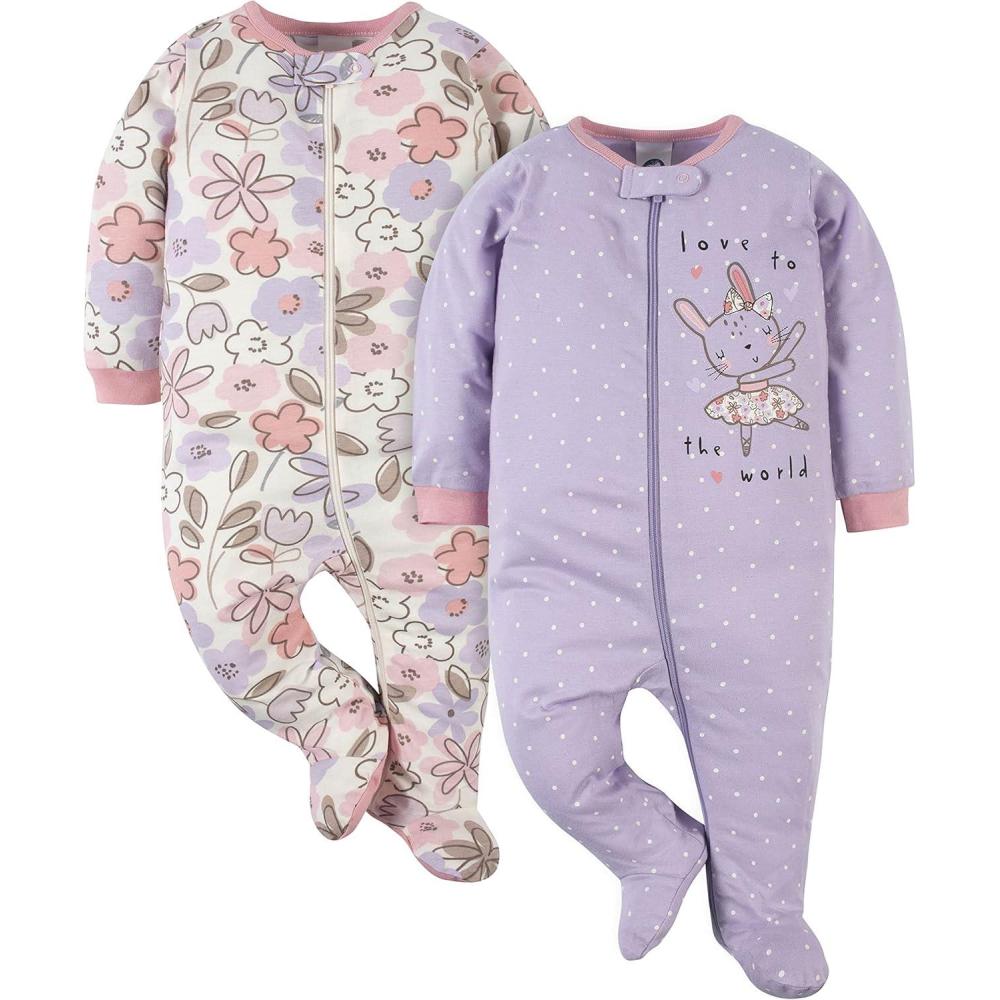 Gerber Baby Boys’ 2-Pack Sleep ‘N Play Pajamas(Bunny Ballerina Purple)