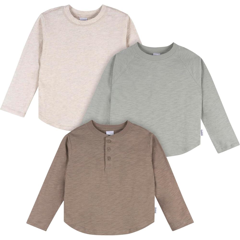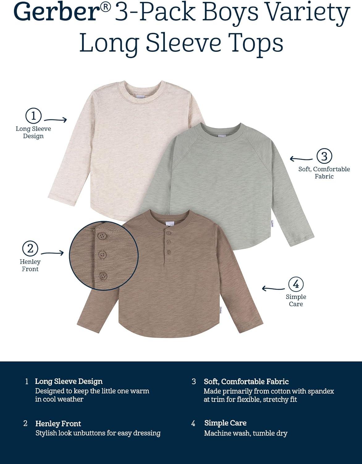 Gerber Baby-Boys 3-Pack Long Sleeve Shirts(Green Blue & Oatmeal)
