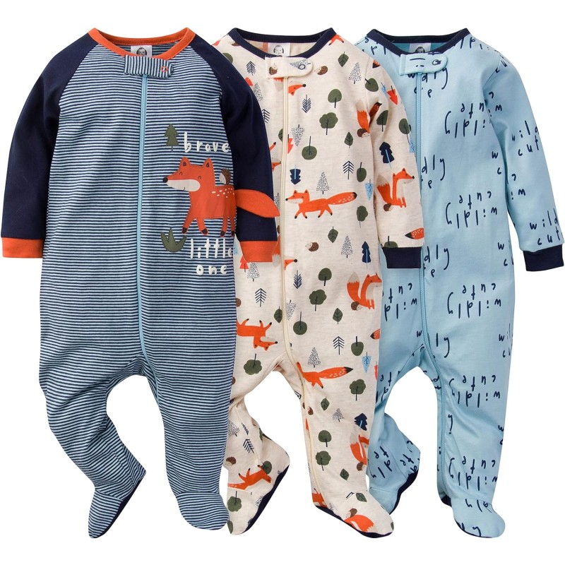 Gerber baby-boys 3-pack Sleep ‘N Play(Blue Fox)