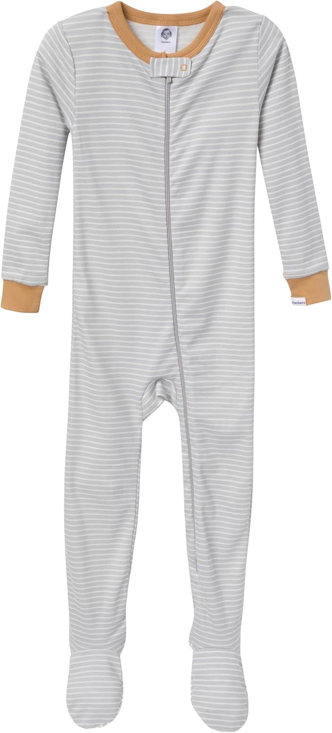 This 4-pack of baby or toddler pajamas is the perfect way to prepare for colder weather, keeping little ones cozy all season long. Crafted primarily from soft cotton, these pajamas offer a breathable and gentle feel against the skin, making them ideal for a comfortable night’s sleep. A two-way zipper with a neckline guard ensures easy dressing and diaper changes, while spandex trim at the neckline and wrists provides a flexible, secure fit. Designed with a tight-fitting style for safe wear, these pajamas also feature non-skid soles to provide extra traction and support for little feet. Whether you’re stocking up for your own child or looking for a thoughtful baby shower gift, this multipack is a cozy, practical choice.