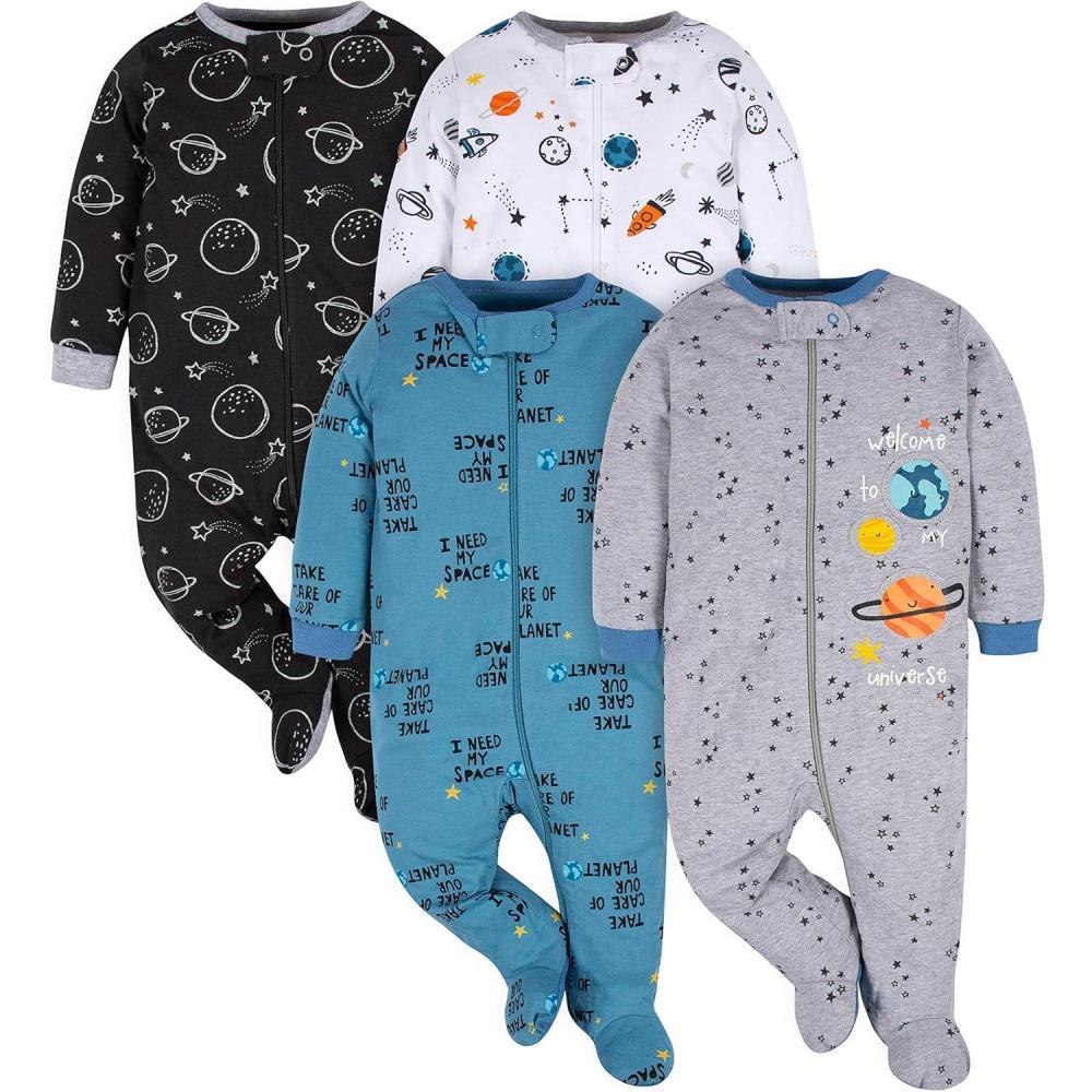 Gerber Baby Boys 4 Pack Sleep ‘N Play Footie(Space)