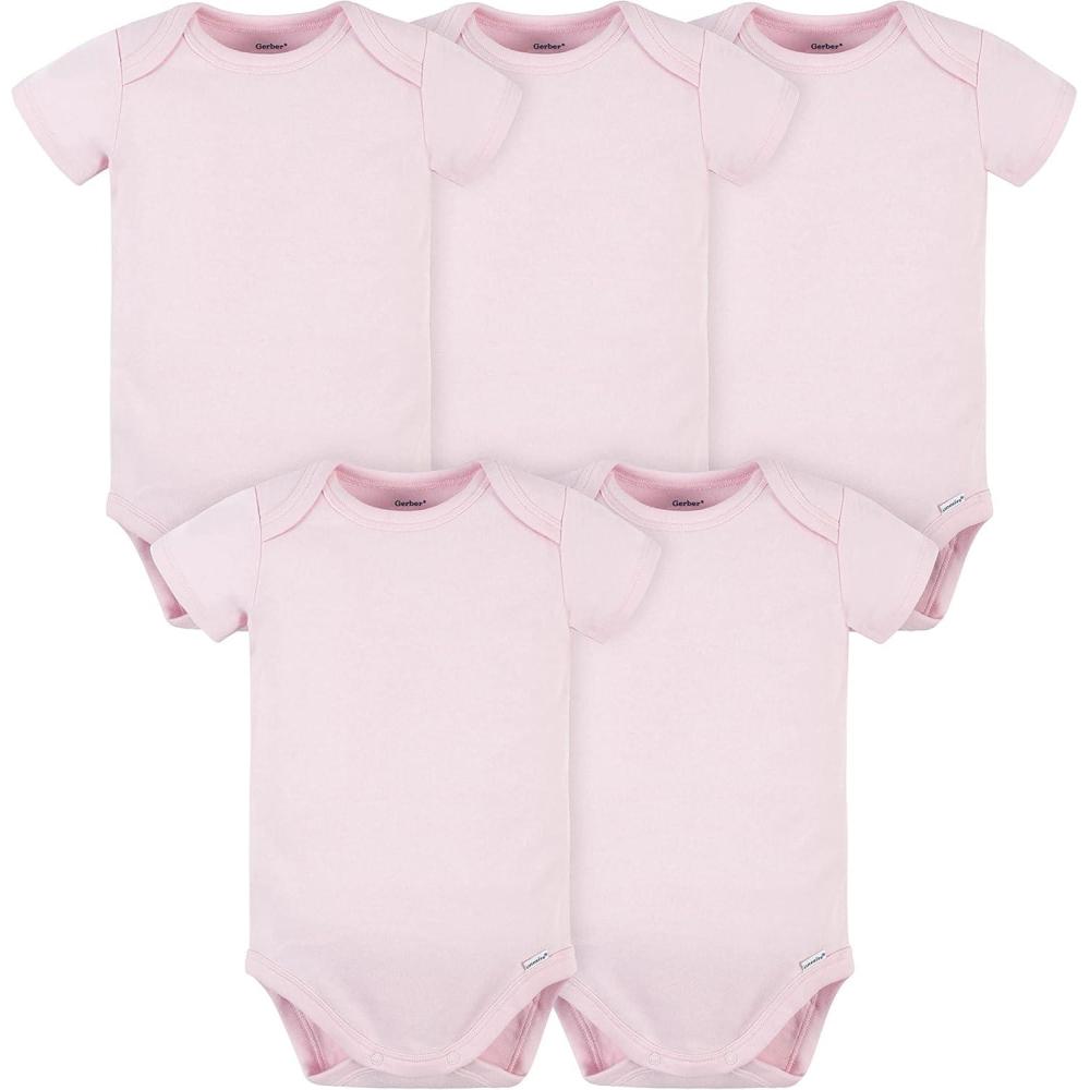 Gerber baby-boys 5 Pack Onesies Multi-packs Bundle Interlock 180 Gsm(Light Pink)