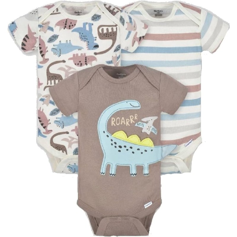 Your little boy will start the day looking his best dressed in one of these Gerber Onesies brand short sleeve bodysuits! Moms and dads will appreciate the higher-in-the-front bottom nickel-free snaps closure that makes for fast and easy diaper changes. 100% cotton rib for breathability and comfort. Mix and match with your favorite bottoms to create a complete look. An essential item for new parents, great for gift giving.