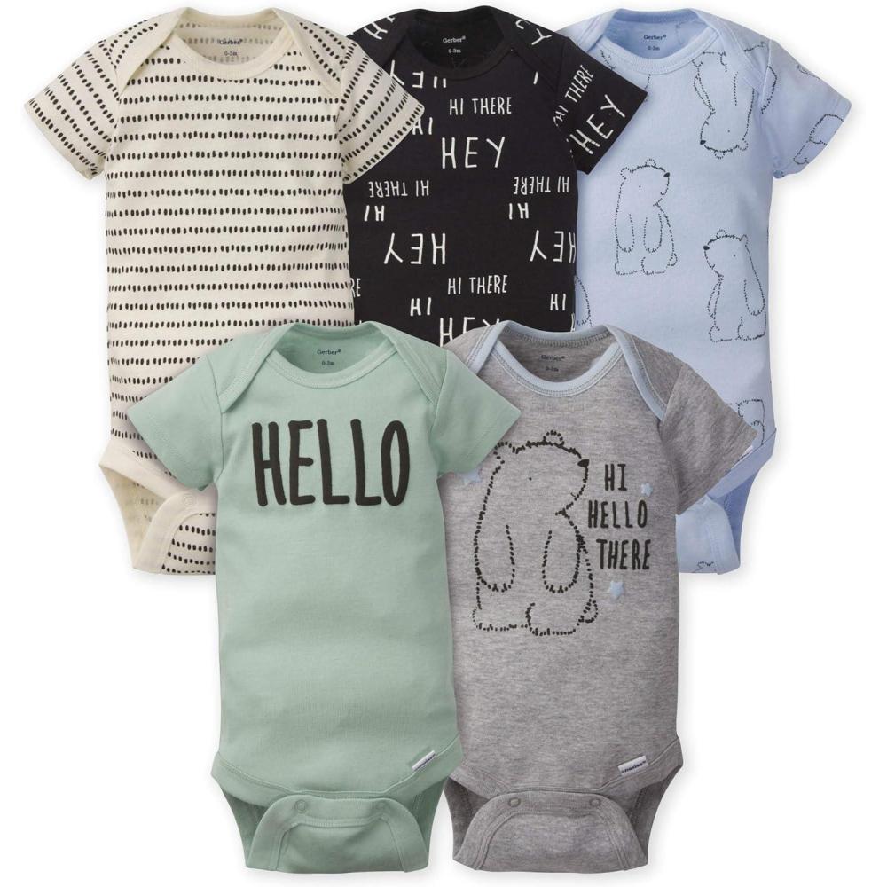 Gerber baby-boys 5-pack Short Sleeve Variety Onesies Bodysuits(Hello Bear)