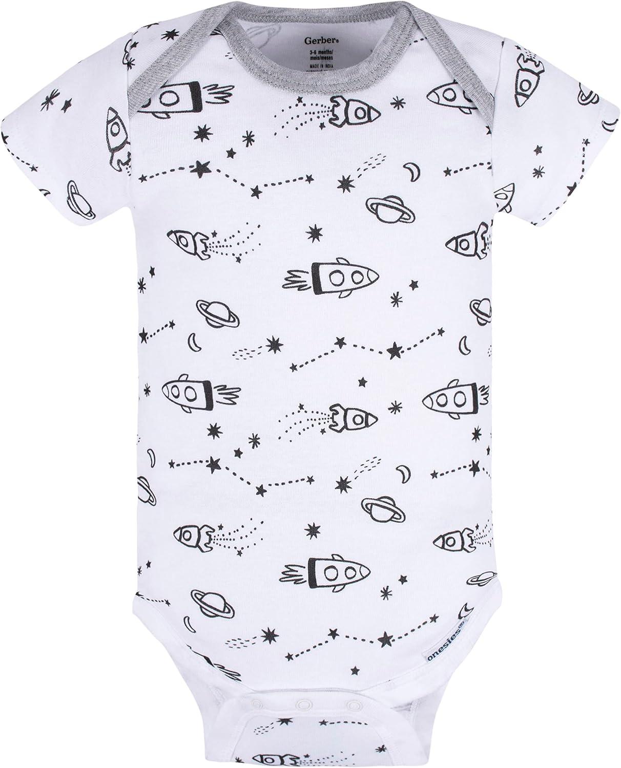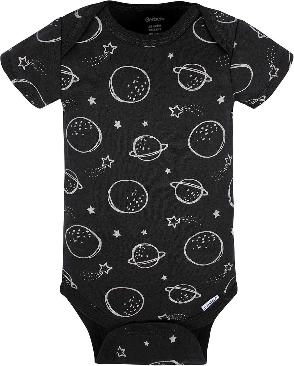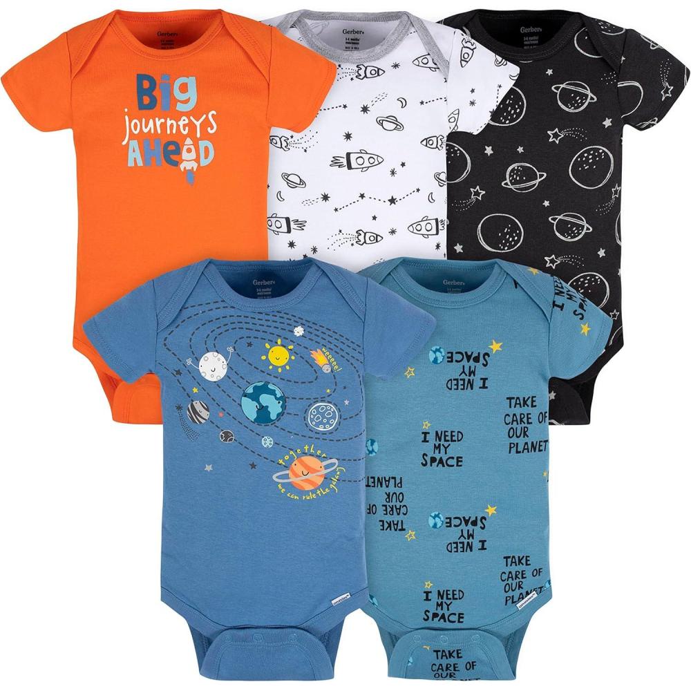 Your little boy will start the day looking his best dressed in one of these Gerber Onesies brand short sleeve bodysuits! Moms and dads will appreciate the higher-in-the-front bottom nickel-free snaps closure that makes for fast and easy diaper changes. 100% cotton rib for breathability and comfort. Mix and match with your favorite bottoms to create a complete look. An essential item for new parents, great for gift giving.