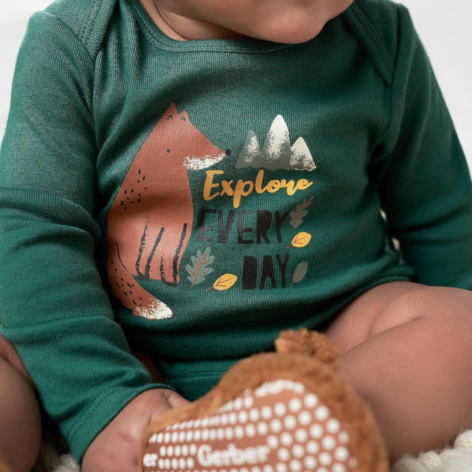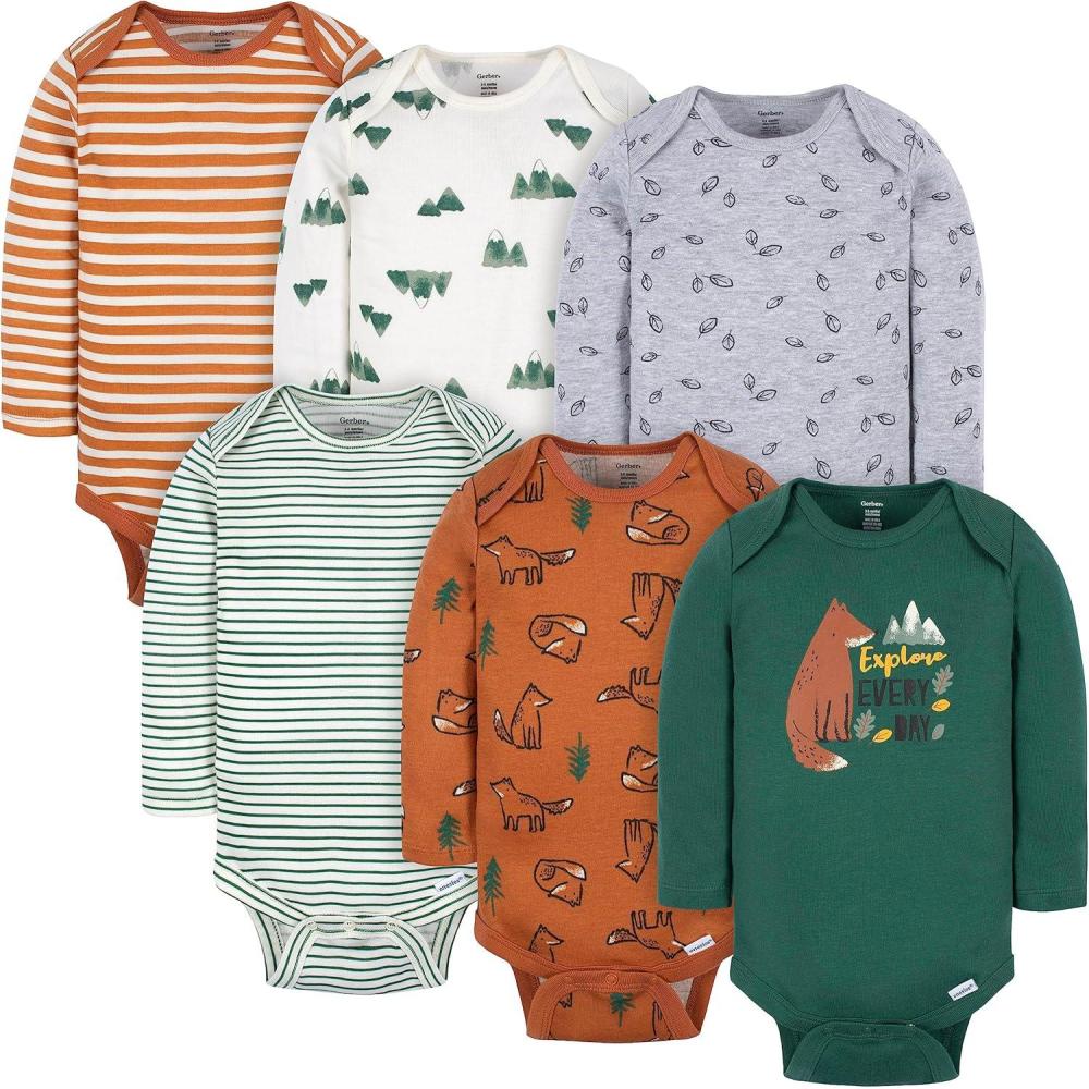 Gerber Baby Boys 6-pack Long-sleeve Onesies Bodysuit(Green Fox)