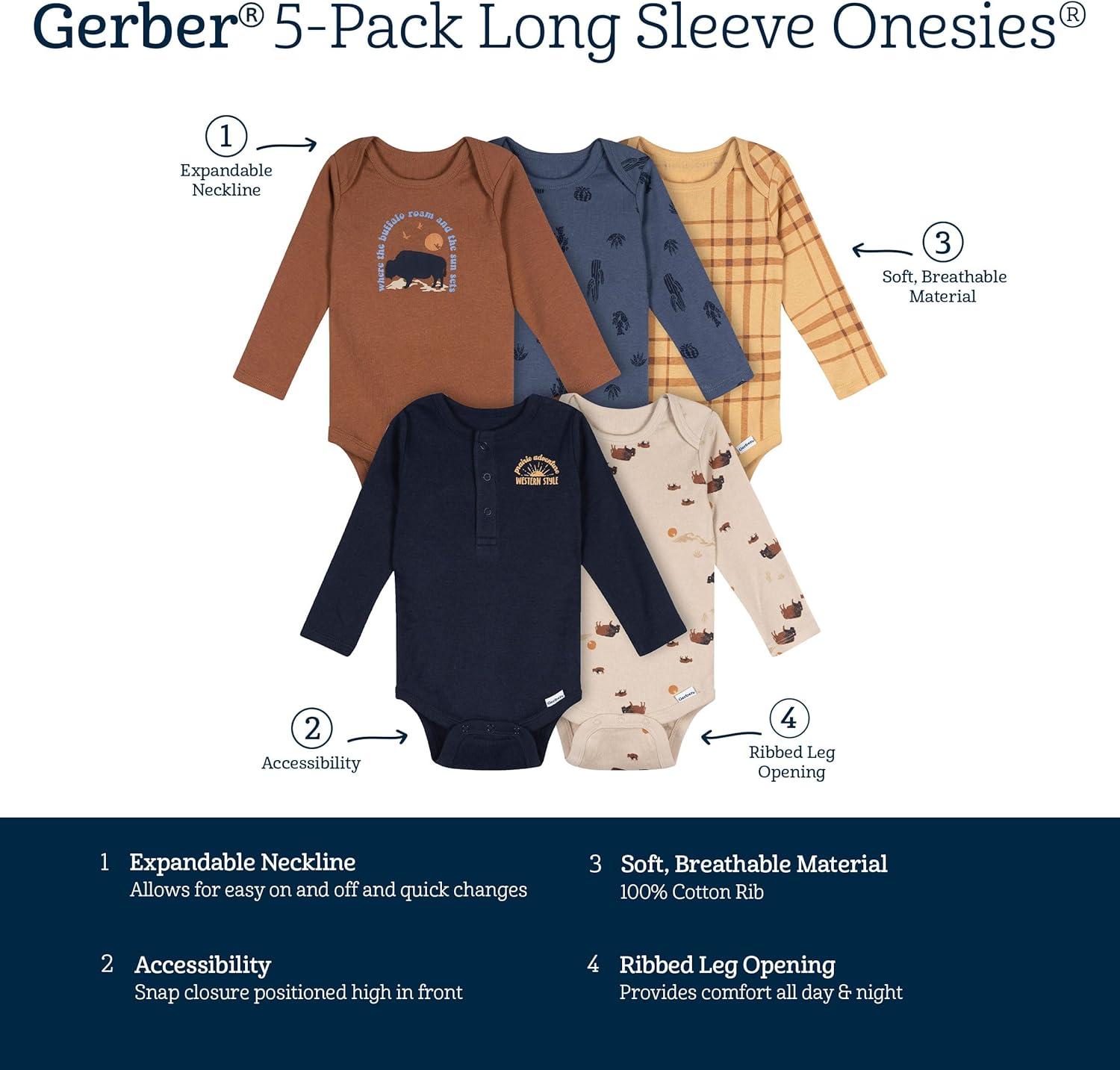 Gerber Baby Boys 6-pack Long-sleeve Onesies Bodysuit(Western Style)