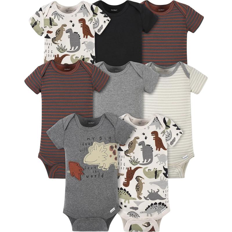 Gerber baby-boys 8-pack Short Sleeve Onesies Bodysuits(Dino Grey)