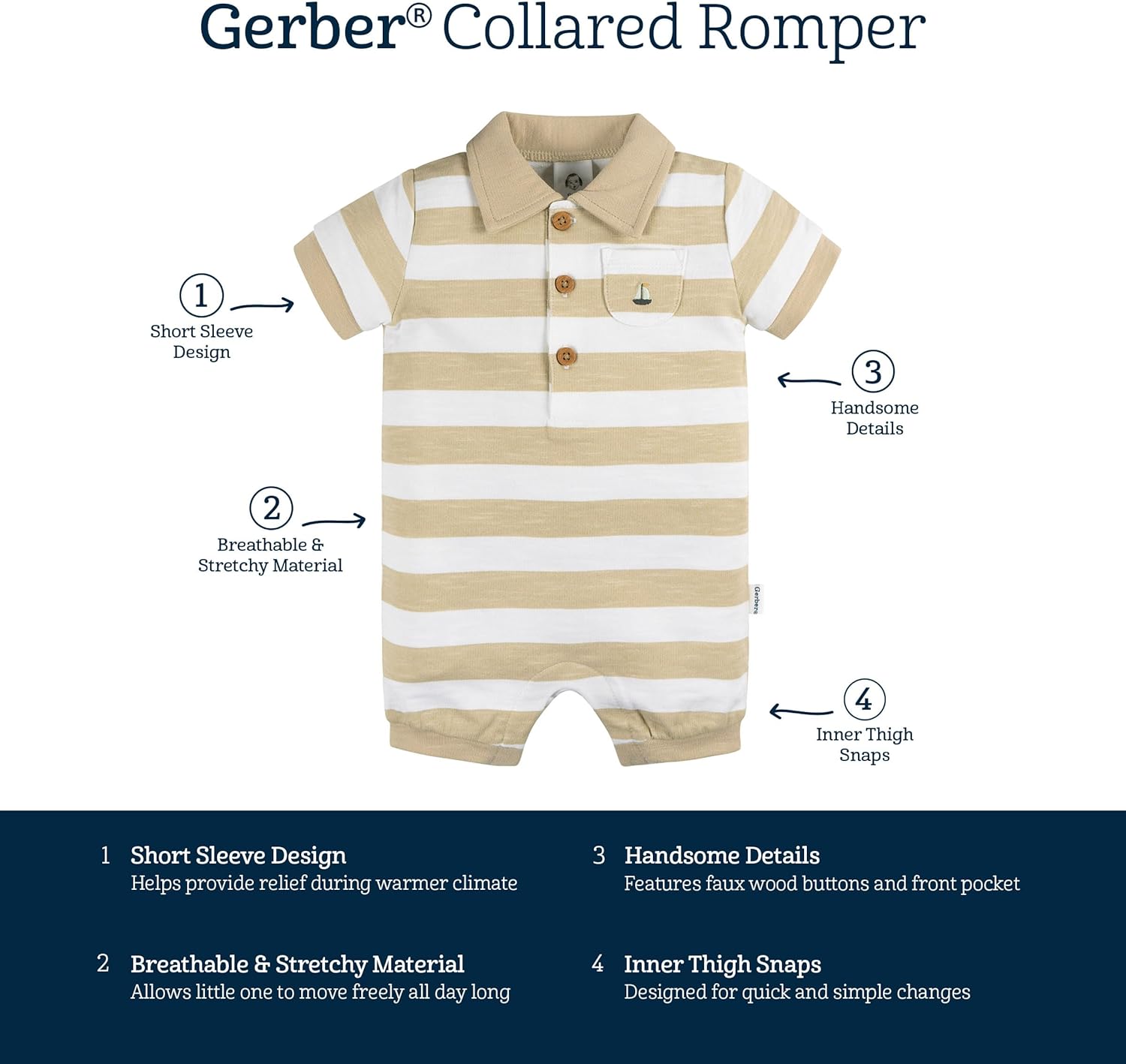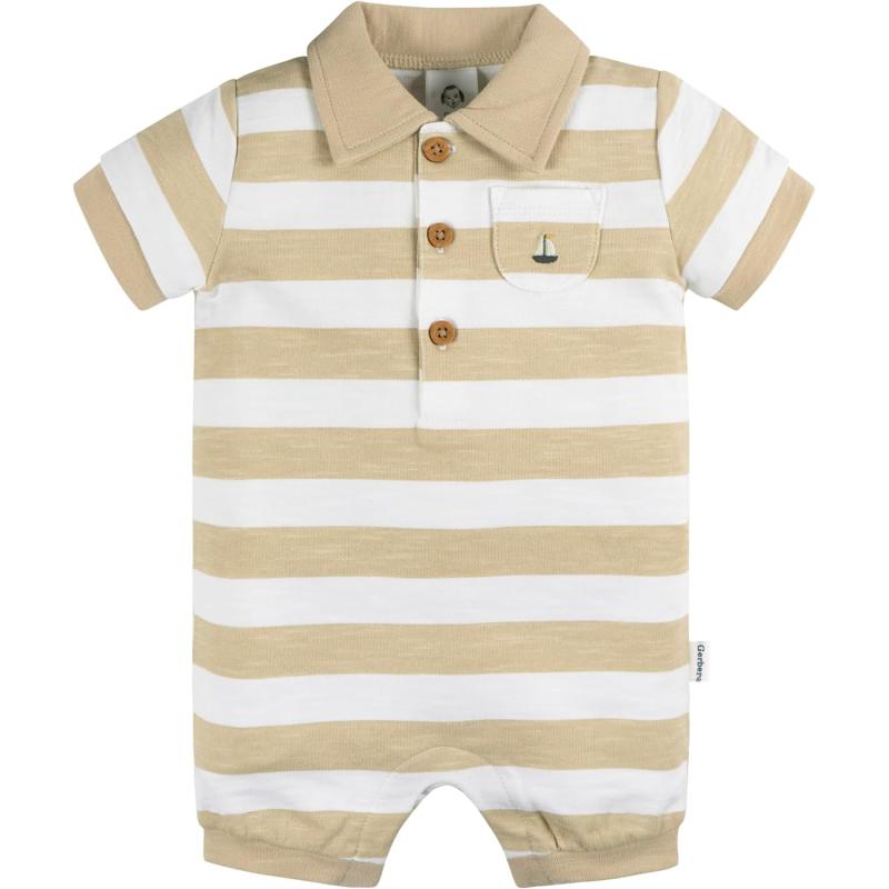 Our baby boy short sleeve romper is a must-have addition to your baby boy's wardrobe. Made from 100% cotton, it’s gentle on your baby's sensitive skin and ideal for warm weather. The short sleeves provide comfort, and the breathable, stretchy material ensures unrestricted movement. Convenient leg snaps make dressing and diaper changes easy, and with machine washing, cleaning is fast and simple. This baby boy romper is the perfect summer baby outfit for him to enjoy all season long, with an unbeatable combination of comfort, style and practical design. Easy-to-change features, safety features, and super soft fabrics, we offer baby girl clothes and baby boy clothes that are sure to fit any family’s needs. If you’re looking for baby sleepwear, we offer a wide range of baby pajamas, baby PJs, baby footies, baby sleepers, and baby fleece pajamas. We also offer baby socks and baby shoes. Our baby girl shoes are sure to add a special flair to her favorite baby outfits. We also offer many baby accessories that your little one will need, such baby sun hat, baby caps, baby hats, baby mittens, no scratch mittens, baby headbands, and baby girl headbands. Our baby bodysuits or baby Onesies® Brand bodysuits make excellent baby shower gifts, but we also offer baby gift sets. If you like to dress your baby with separates, be sure to check out our baby pants, baby shorts, baby shirts, baby tops, and baby bottoms. Our baby swimwear and baby swimsuits are a big hit too! If it’s bedding you’re looking for, we have crib sheets, changing pad, crib mobile, baby toys, baby blankets, baby gifts, swaddle blanket, and mattress protector. Our baby clothing sizing ranges from baby girl clothes preemie, baby boy clothes preemie, baby girl clothes newborn, baby boy clothes newborn, baby girl clothes 0-3 months, baby boy clothes 0-3 months, baby girl clothes 3-6 months, baby boy clothes 3-6 months, baby girl clothes 6-9 months, baby boy clothes 6-9 months, baby girl clothes 12 months, baby boy clothes 12 months, baby girl clothes 18 months, baby boy clothes 18 months, baby girl clothes 24 months, baby boy clothes 24 months, toddler girl clothes 2T, toddler boy clothes 2T, toddler girl clothes 3T, toddler boy clothes 3T, toddler girl clothes 4T, toddler boy clothes 4T, toddler girl clothes 5T, toddler boy clothes 5T. We have all your baby stuff covered, whether it’s baby boy stuff or baby girl stuff!