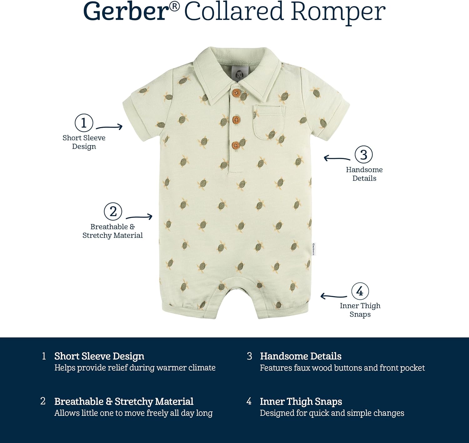 Gerber Baby Boys Cotton Polo RomperRomper(Turtle)