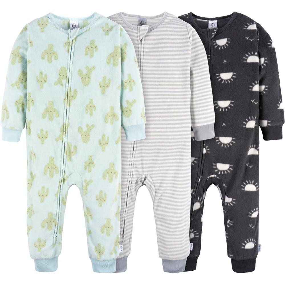 Gerber Baby Boys’ Flame Resistant Fleece Footless Pajamas 3-Pack(Dogs/Dinos)