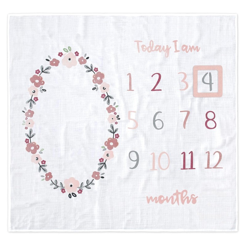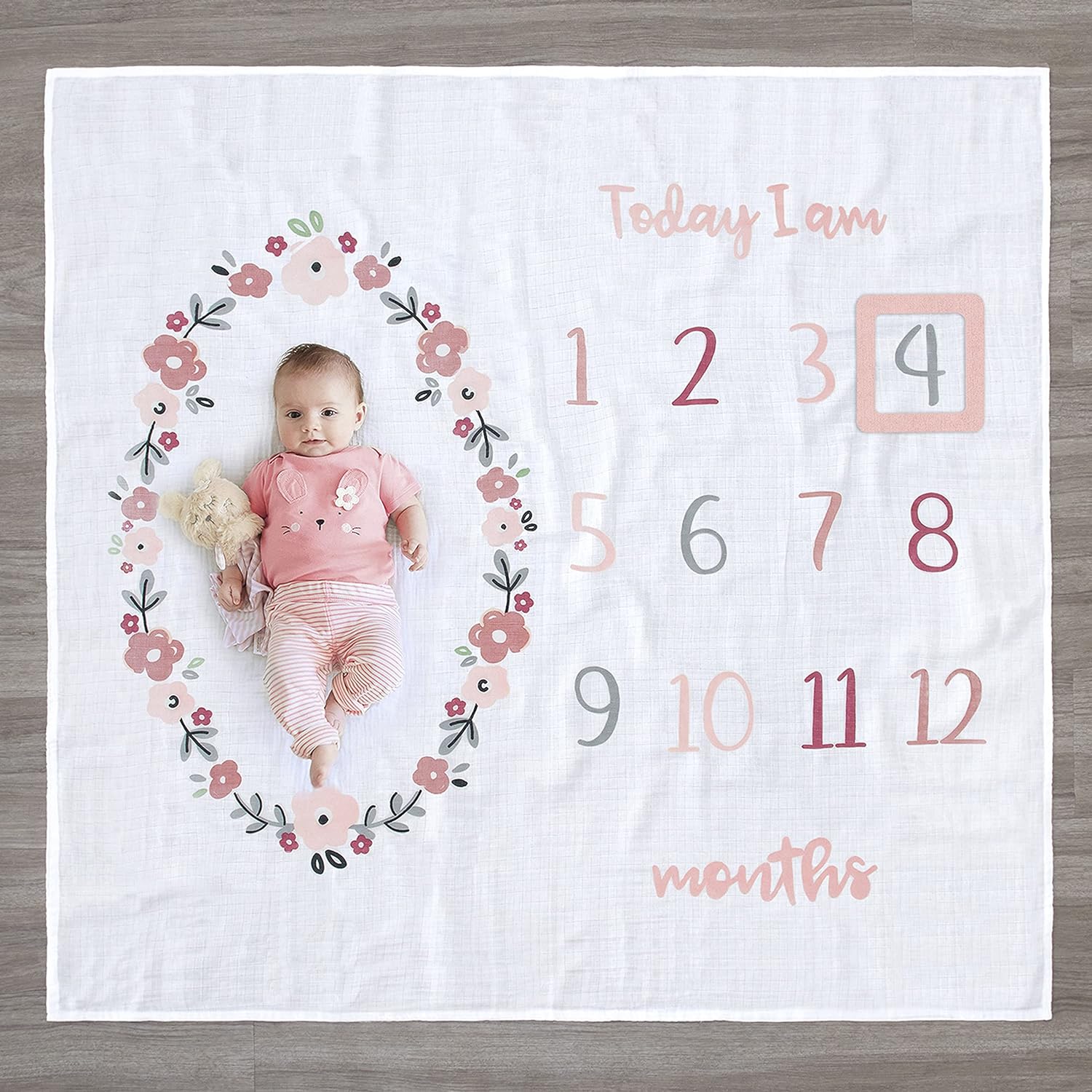 Gerber Baby Boys Girls and Neutral Newborn Infant Baby Toddler Nursery 100% Cotton Monthly Milestone First Year Blanket, Floral White, 47″ x 47″(47″ x 47″ Floral White)