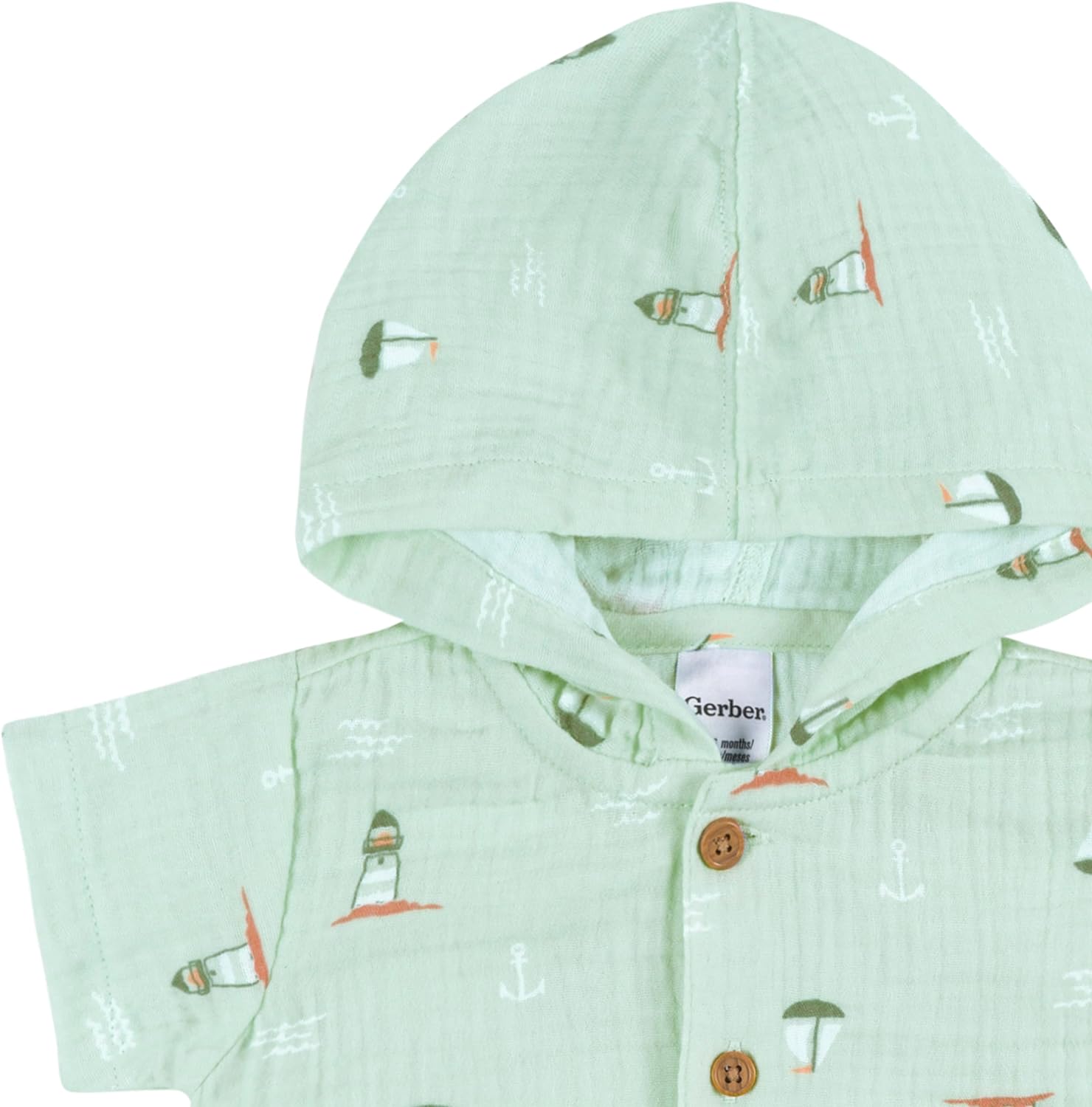Gerber Baby Boys Hooded Cotton RomperRomper(Sea Scene)
