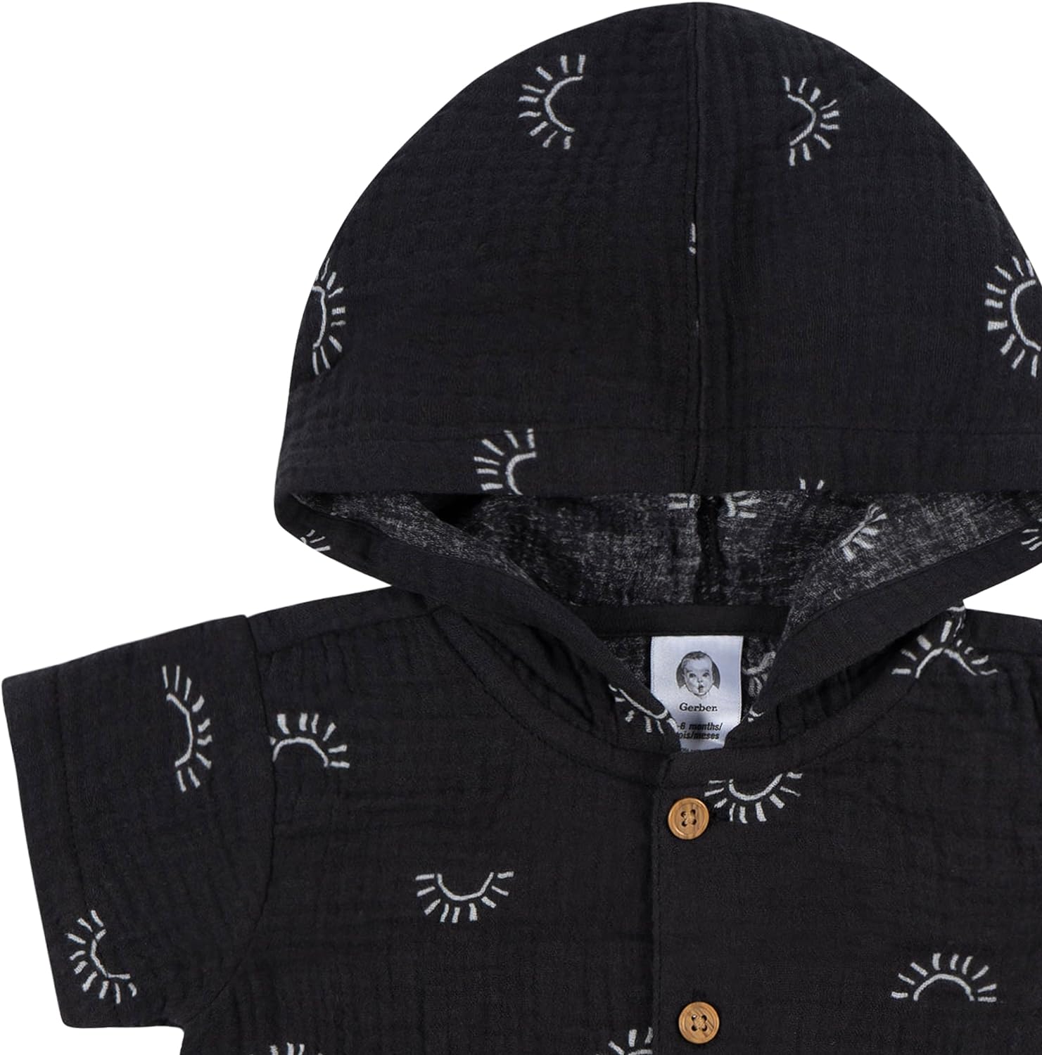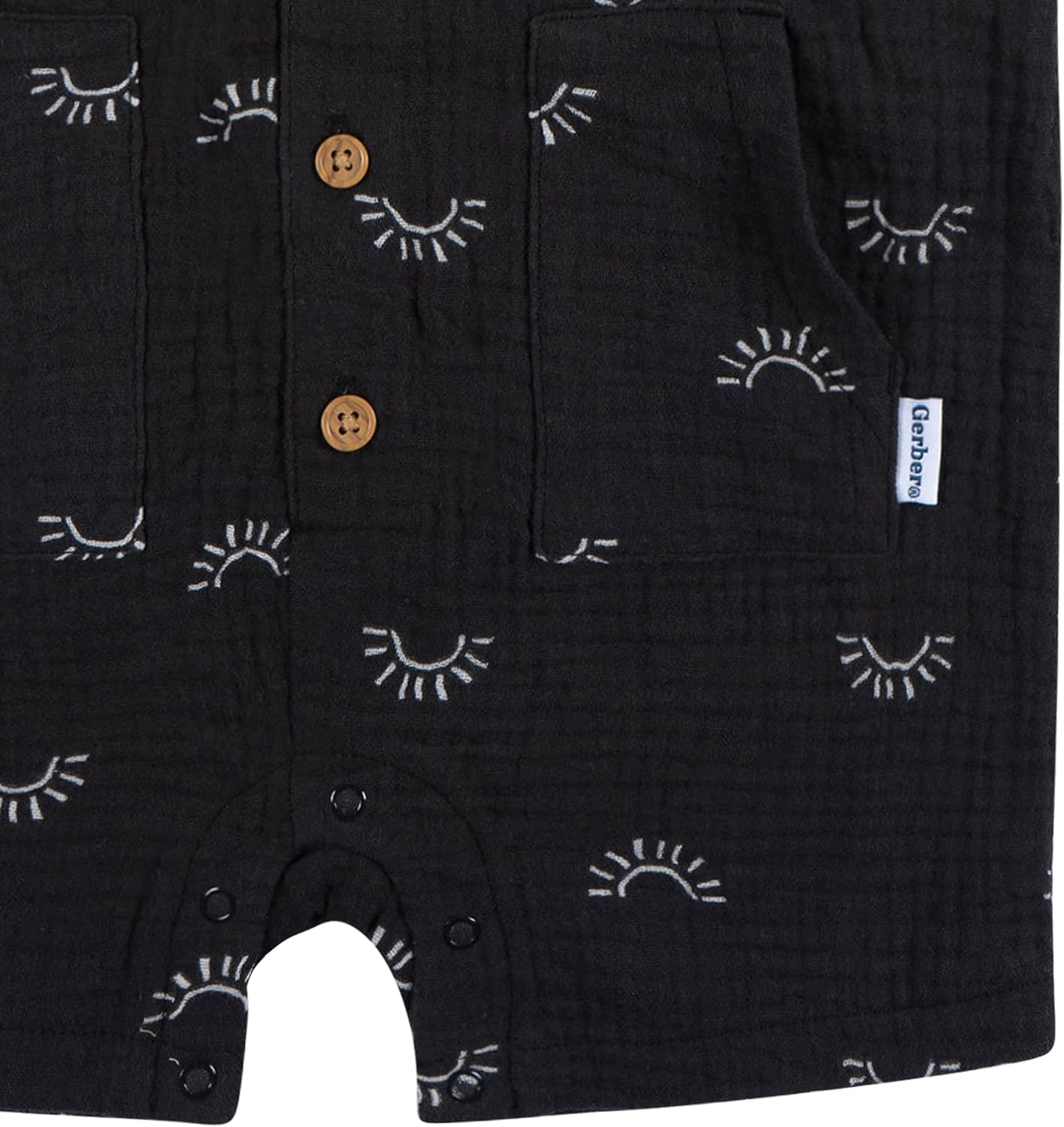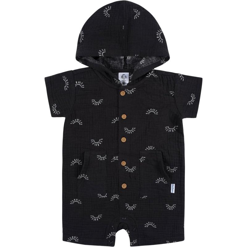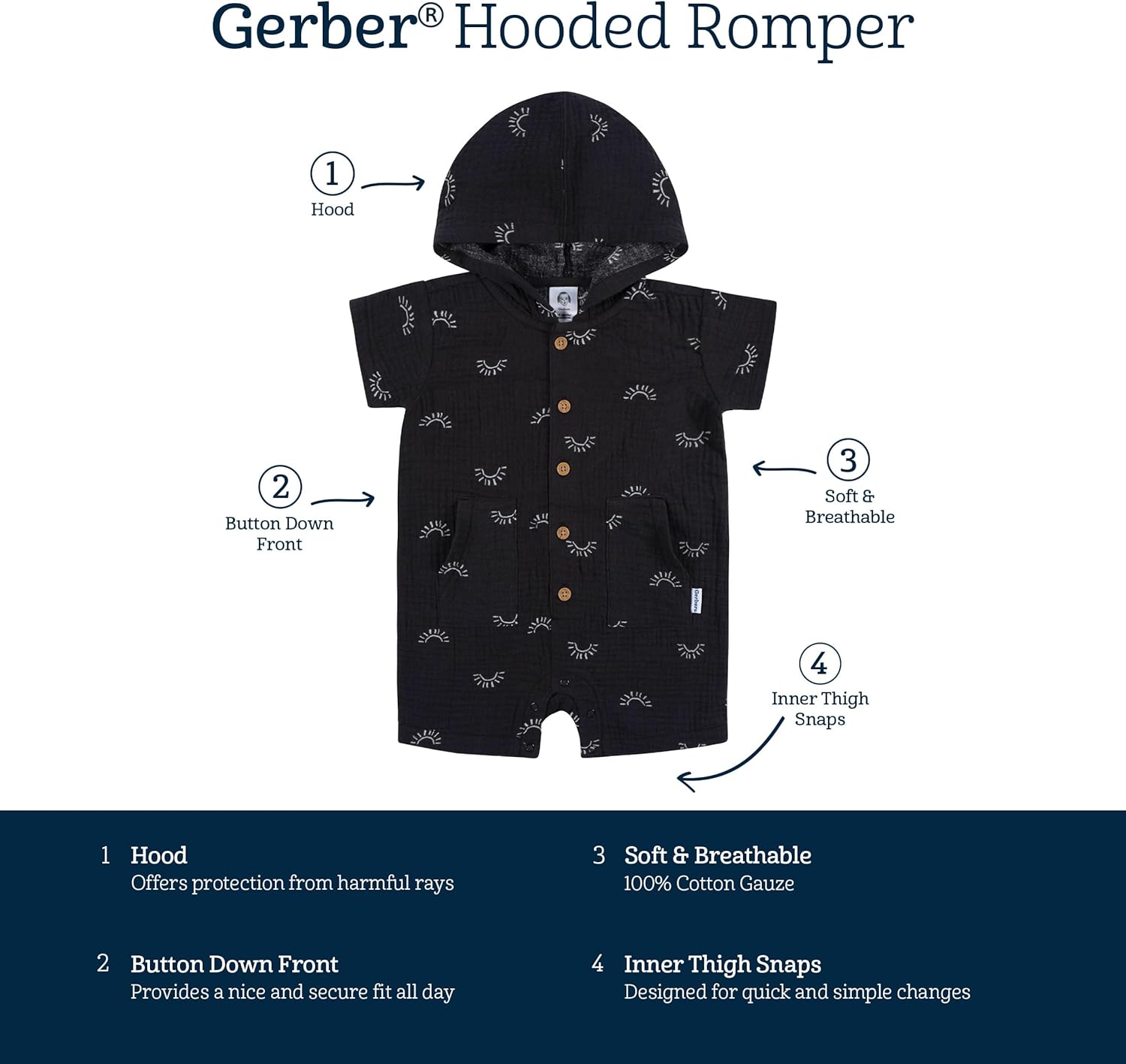 Whether you're taking a family trip to the park, enjoying a day trip, or simply playing in the backyard, our baby boy romper is the ideal choice for any warm-weather occasion. Made from a lightweight, breathable 100% cotton gauze, this baby boy romper keeps your little one cool and happy even in warm weather. Convenient leg snaps make dressing and diaper changes easy, while the button-down front enables a secure fit. And to protect your little one from harmful rays, an integrated hood provides gentle protection. Simple machine cleaning makes it easy to keep this baby boy romper ready to wear all season long! Easy-to-change features, safety features, and super soft fabrics, we offer baby girl clothes and baby boy clothes that are sure to fit any family’s needs. If you’re looking for baby sleepwear, we offer a wide range of baby pajamas, baby PJs, baby footies, baby sleepers, and baby fleece pajamas. We also offer baby socks and baby shoes. Our baby girl shoes are sure to add a special flair to her favorite baby outfits. We also offer many baby accessories that your little one will need, such baby sun hat, baby caps, baby hats, baby mittens, no scratch mittens, baby headbands, and baby girl headbands. Our baby bodysuits or baby Onesies® Brand bodysuits make excellent baby shower gifts, but we also offer baby gift sets. If you like to dress your baby with separates, be sure to check out our baby pants, baby shorts, baby shirts, baby tops, and baby bottoms. Our baby swimwear and baby swimsuits are a big hit too! If it’s bedding you’re looking for, we have crib sheets, changing pad, crib mobile, baby toys, baby blankets, baby gifts, swaddle blanket, and mattress protector. Our baby clothing sizing ranges from baby girl clothes preemie, baby boy clothes preemie, baby girl clothes newborn, baby boy clothes newborn, baby girl clothes 0-3 months, baby boy clothes 0-3 months, baby girl clothes 3-6 months, baby boy clothes 3-6 months, baby girl clothes 6-9 months, baby boy clothes 6-9 months, baby girl clothes 12 months, baby boy clothes 12 months, baby girl clothes 18 months, baby boy clothes 18 months, baby girl clothes 24 months, baby boy clothes 24 months, toddler girl clothes 2T, toddler boy clothes 2T, toddler girl clothes 3T, toddler boy clothes 3T, toddler girl clothes 4T, toddler boy clothes 4T, toddler girl clothes 5T, toddler boy clothes 5T. We have all your baby stuff covered, whether it’s baby boy stuff or baby girl stuff!