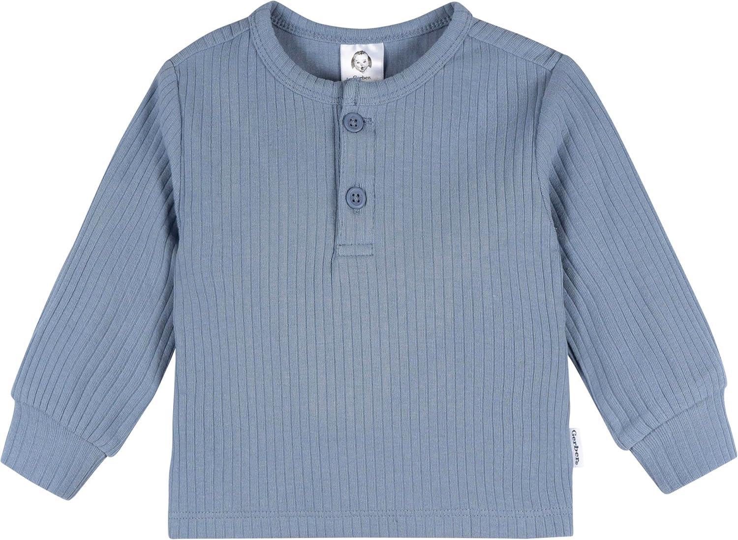 Soft, sweet, and thoughtfully made, this 2-piece set brings comfort and charm to baby’s everyday wardrobe. The ribbed texture adds a gentle stretch that moves with baby, while the soothing blue color is as calming as it is cute. A buttoned neckline and easy pull-on pants make changes simple, and the breathable cotton-spandex blend keeps baby comfy from playtime to naptime.