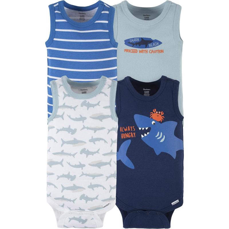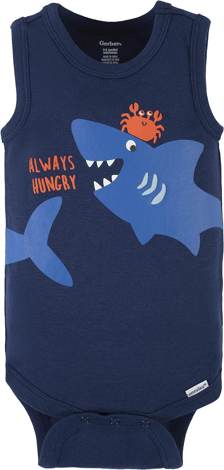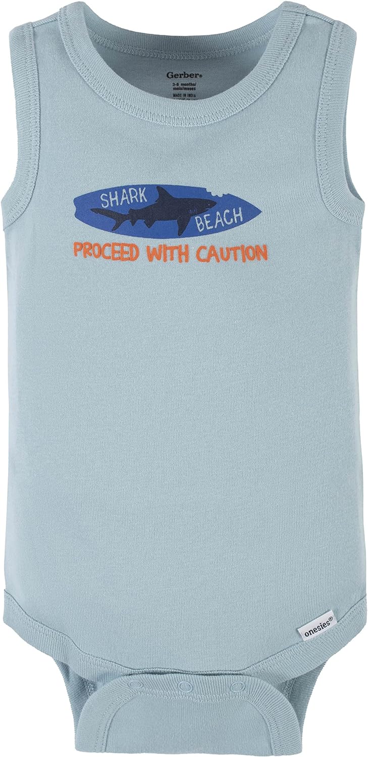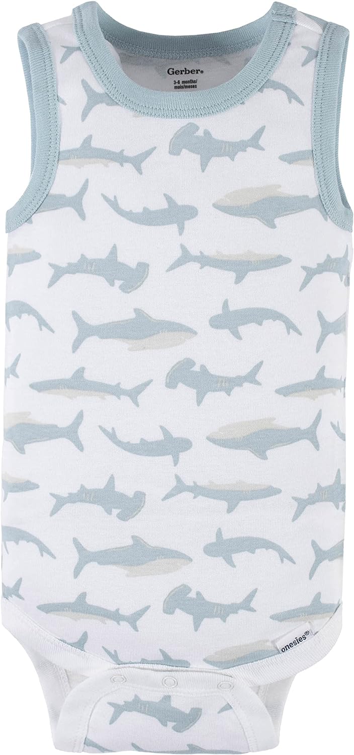 Gerber Baby Boys Multi-Pack Sleeveless Onesies Bodysuit(Blue Shark)