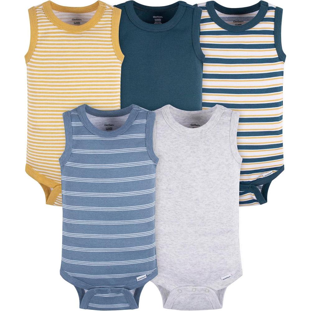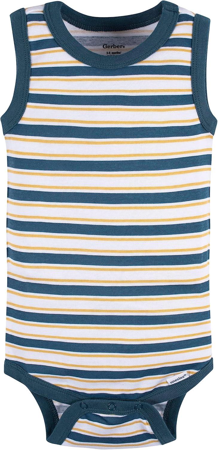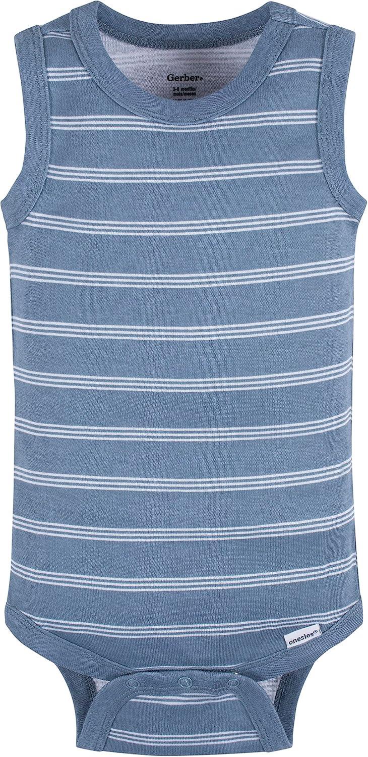 Gerber Baby Boys Multi-Pack Sleeveless Onesies Bodysuit(Blue Stripe)