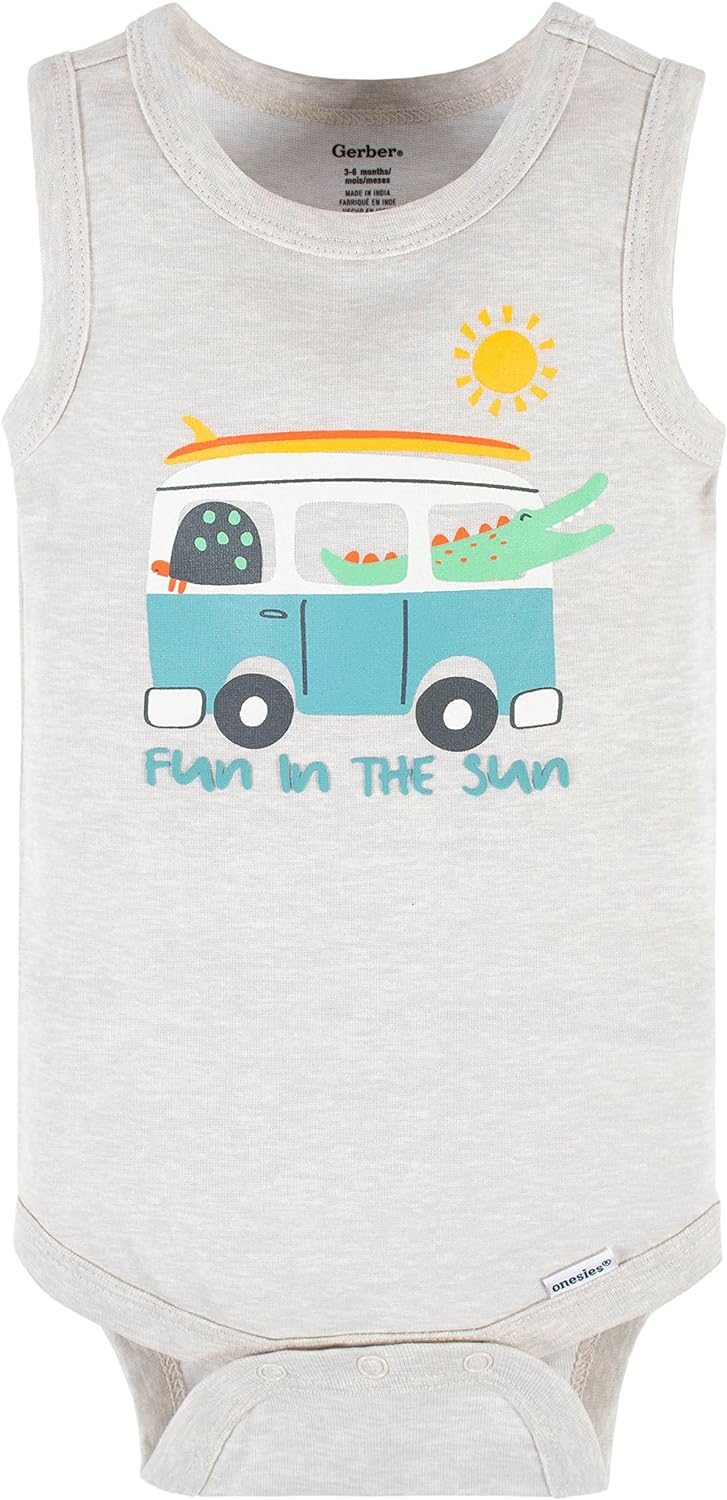 Gerber Baby Boys Multi-Pack Sleeveless Onesies Bodysuit(Fun in the Sun Grey)