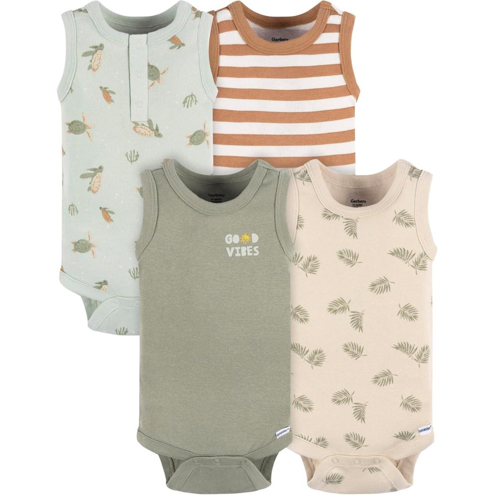 Gerber Baby Boys Multi-Pack Sleeveless Onesies Bodysuit(Sea Turtles)