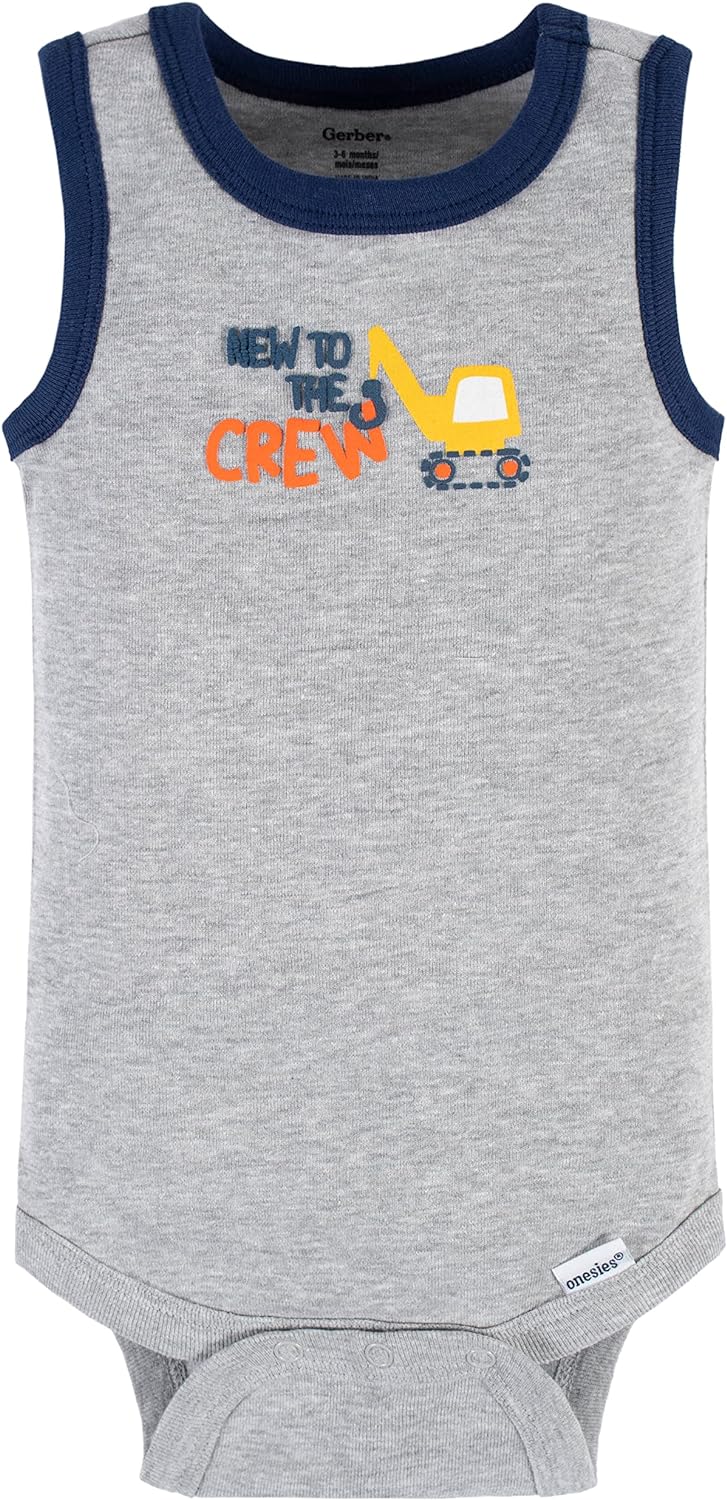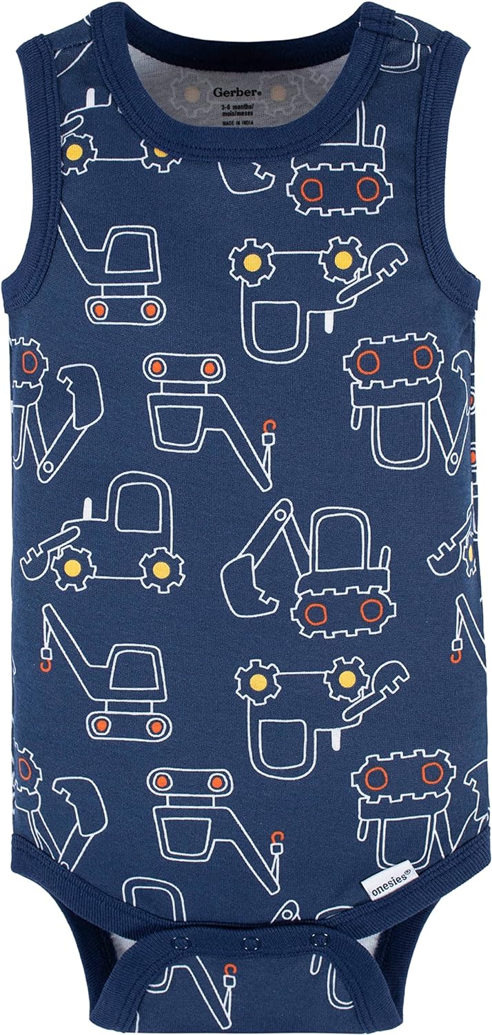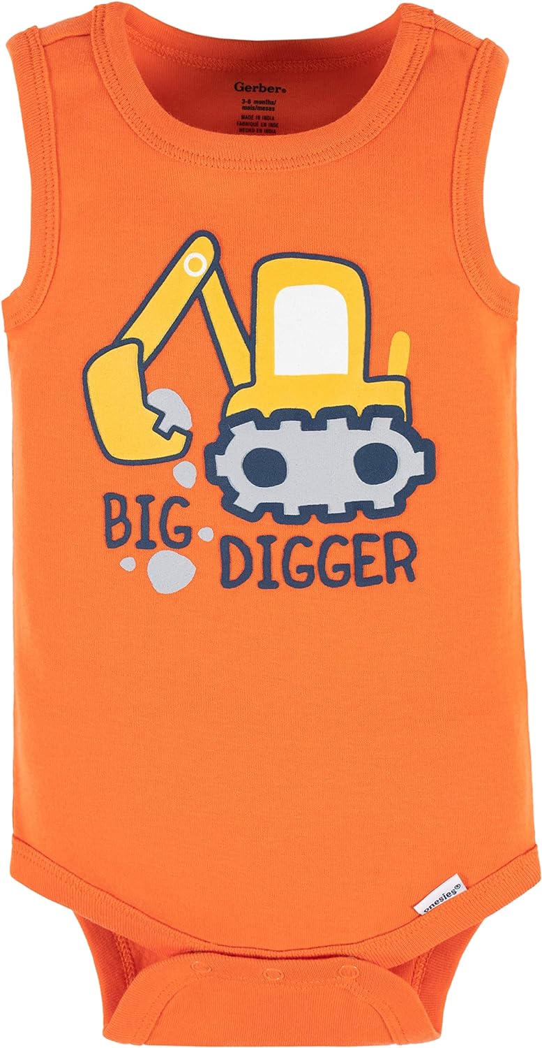 Gerber Baby Boys Multi-Pack Sleeveless Onesies Bodysuit(Yellow Big Digger)