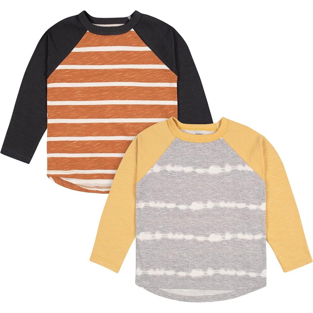 Gerber® extremely soft cotton jersey fabric is perfect for all day wear. High-quality, lightweight, breathable, durable fabric for active babies and toddlers. We had our essentials independently certified with STANDARD 100 by OEKO-TEX® so that you don’t have to worry about harmful substances in your baby’s wardrobe. Gerber quality, comfort, safety and value never goes out of style. Includes two long sleeve allover printed tees.
