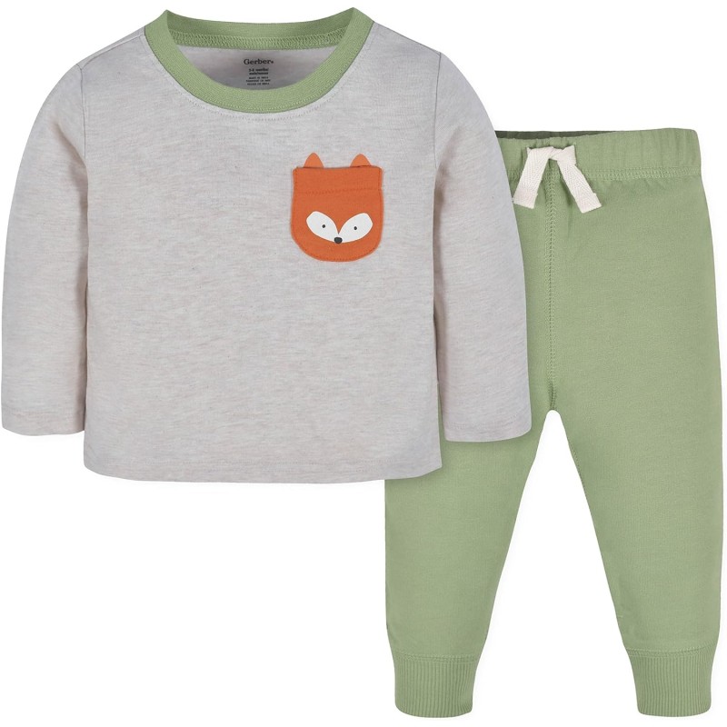 Gerber baby-boys Toddler 2-piece Long Sleeve Tee & Pull-on Jogger Set(Green)