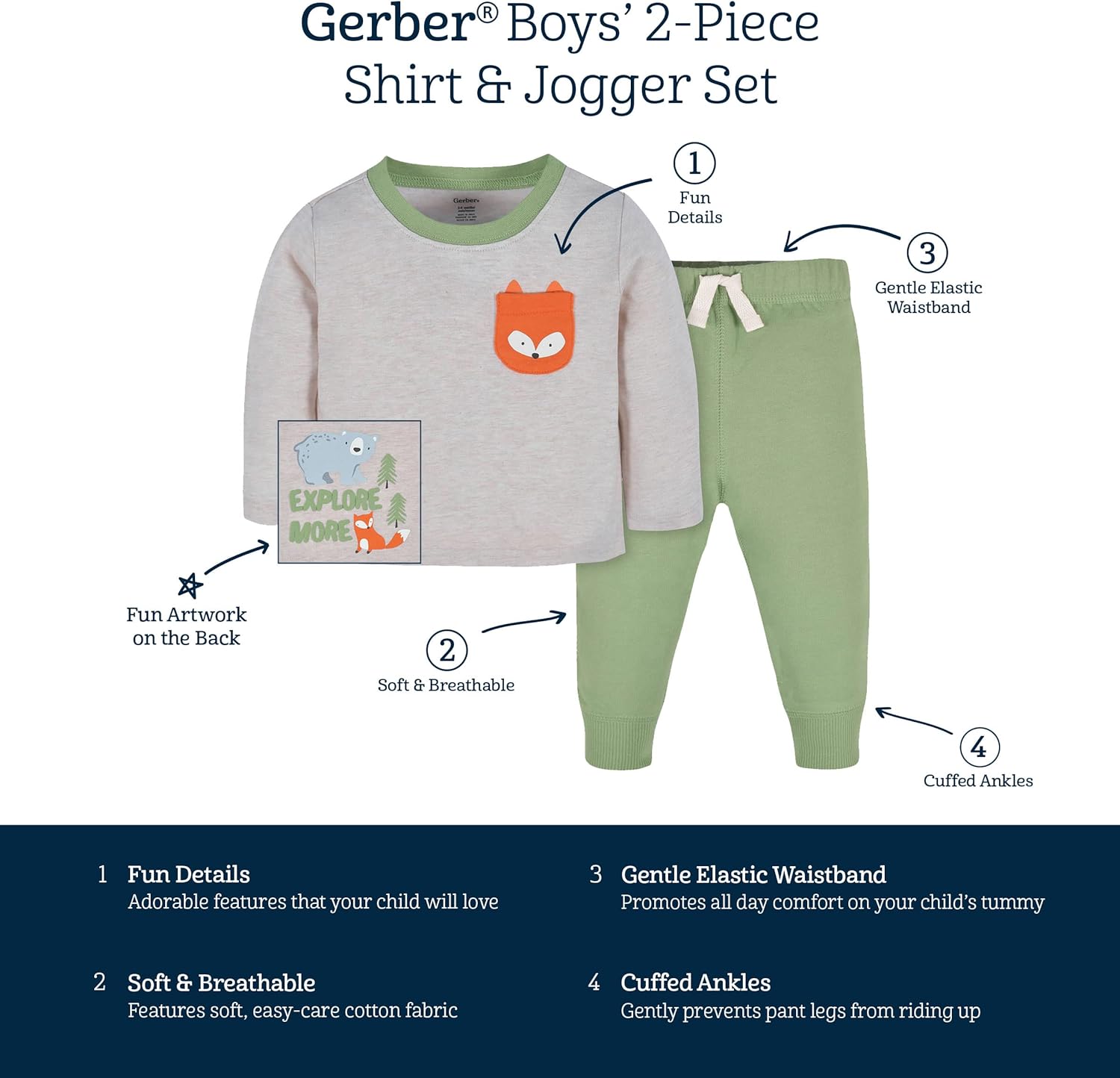 Gerber baby-boys Toddler 2-piece Long Sleeve Tee & Pull-on Jogger Set(Green Explore)
