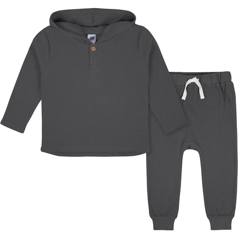 Gerber baby-boys Toddler 2-piece Waffle Hooded Top & Jogger Set(Grey)