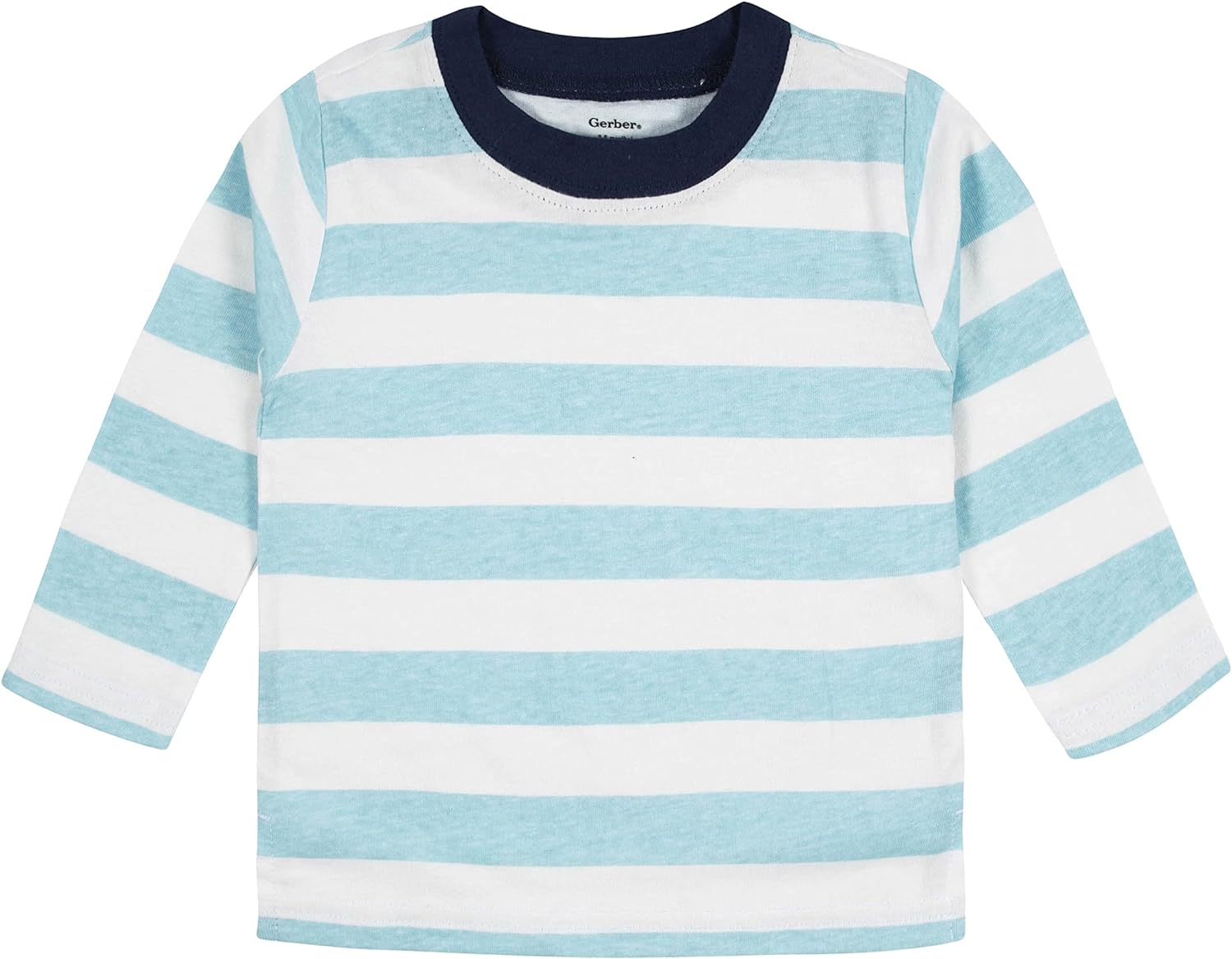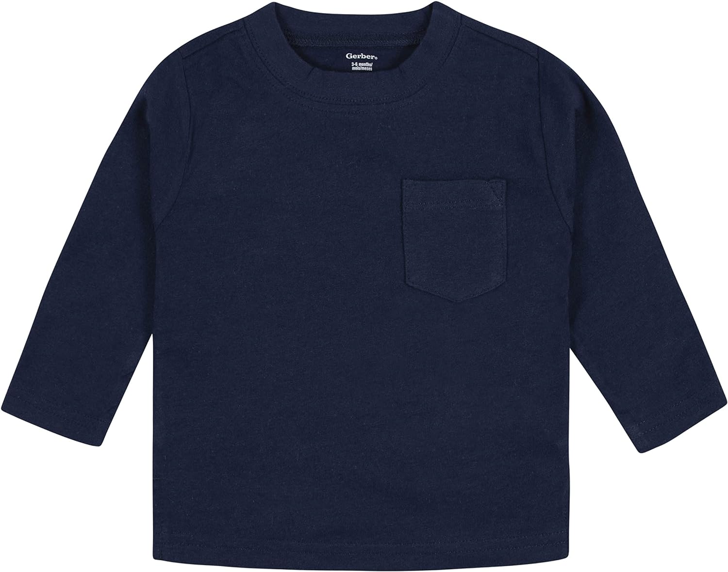 Gerber Baby Boys’ Toddler 3-Pack Long Sleeve Pocket Tees(Blue Stripes & Solids)