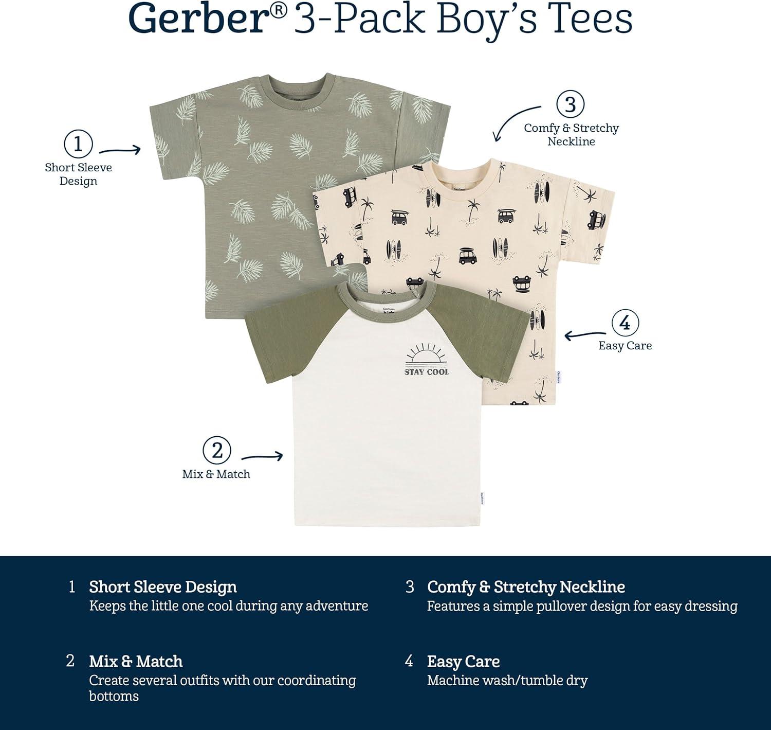 Gerber Baby Boys’ Toddler 3-Pack Short Sleeve Pocket Tees(Stay Cool)