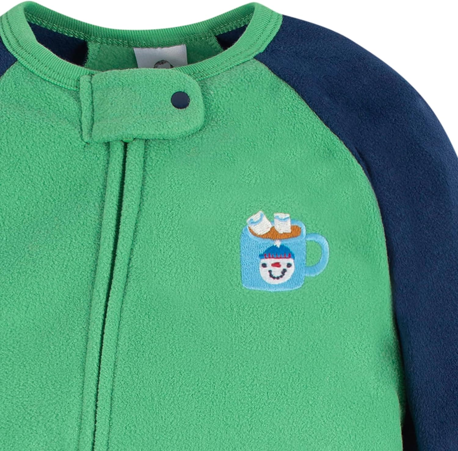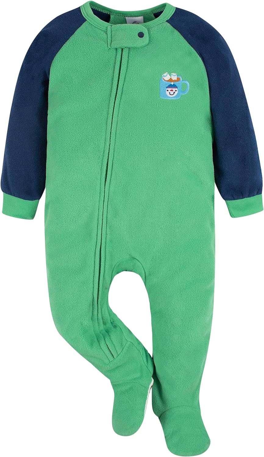 Gerber Baby Boys’ Toddler Loose Fit Flame Resistant Fleece Footed Pajamas 2-Pack(Fox Green)