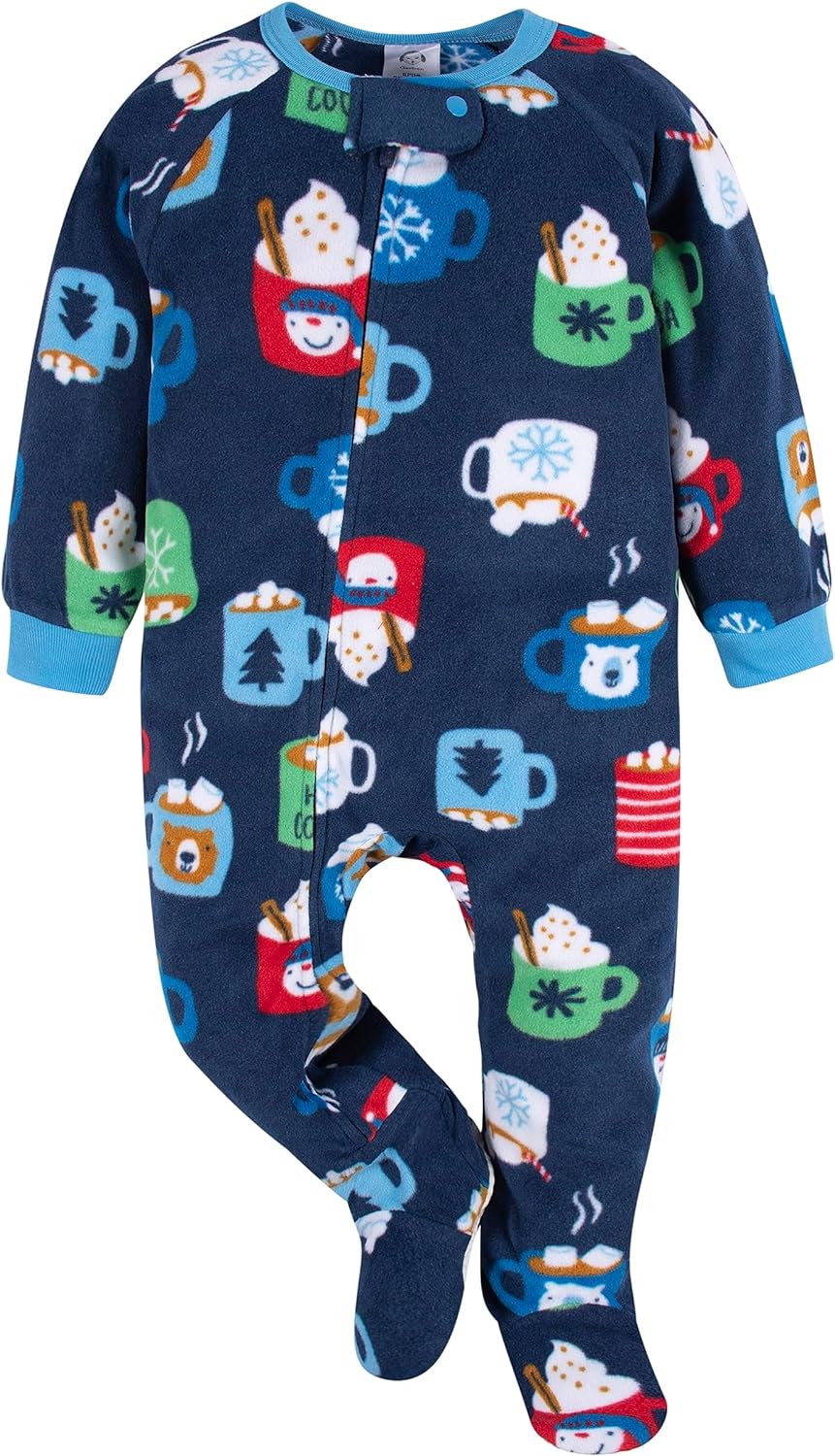 Gerber Baby Boys’ Toddler Loose Fit Flame Resistant Fleece Footed Pajamas 2-Pack(Blue Mug)