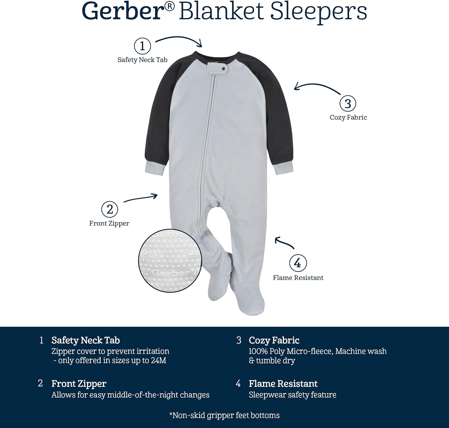 Gerber Baby Boys’ Toddler Loose Fit Flame Resistant Fleece Footed Pajamas 2-Pack(Space Black)
