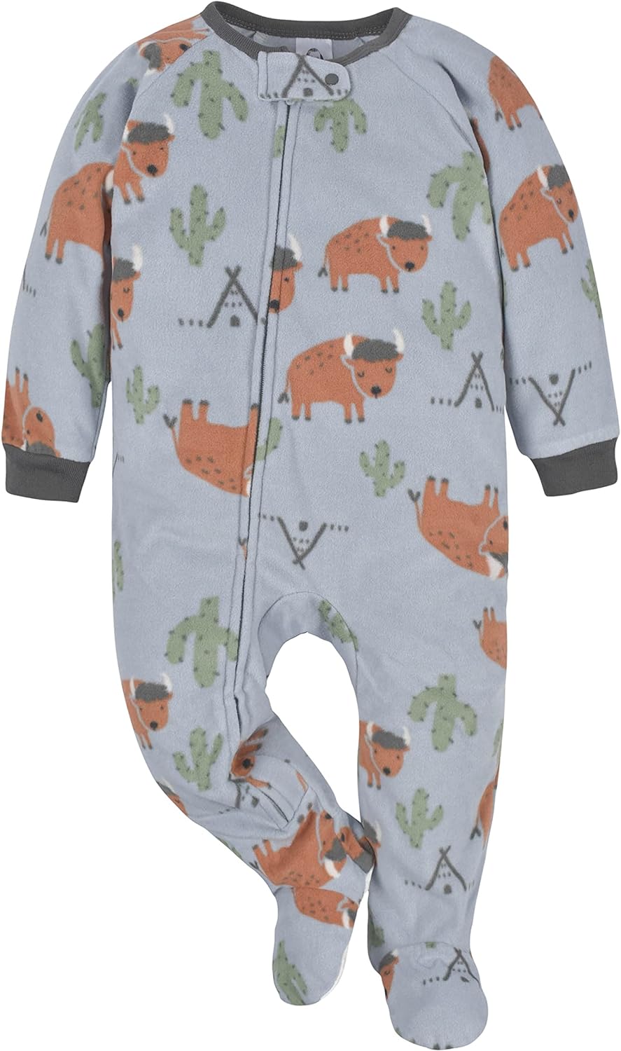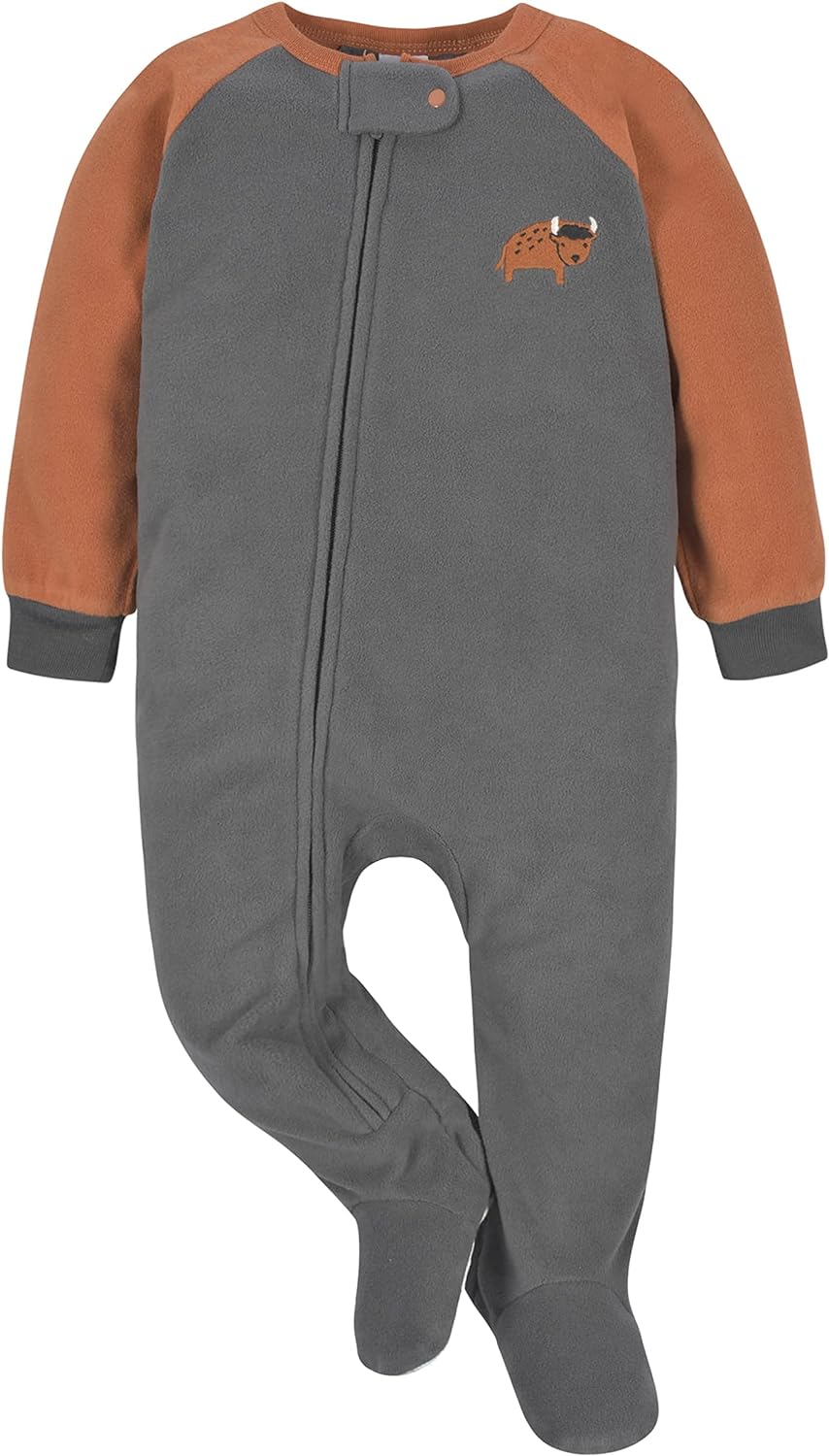 Gerber Baby Boys’ Toddler Loose Fit Flame Resistant Fleece Footed Pajamas 2-Pack(Buffalo Grey)