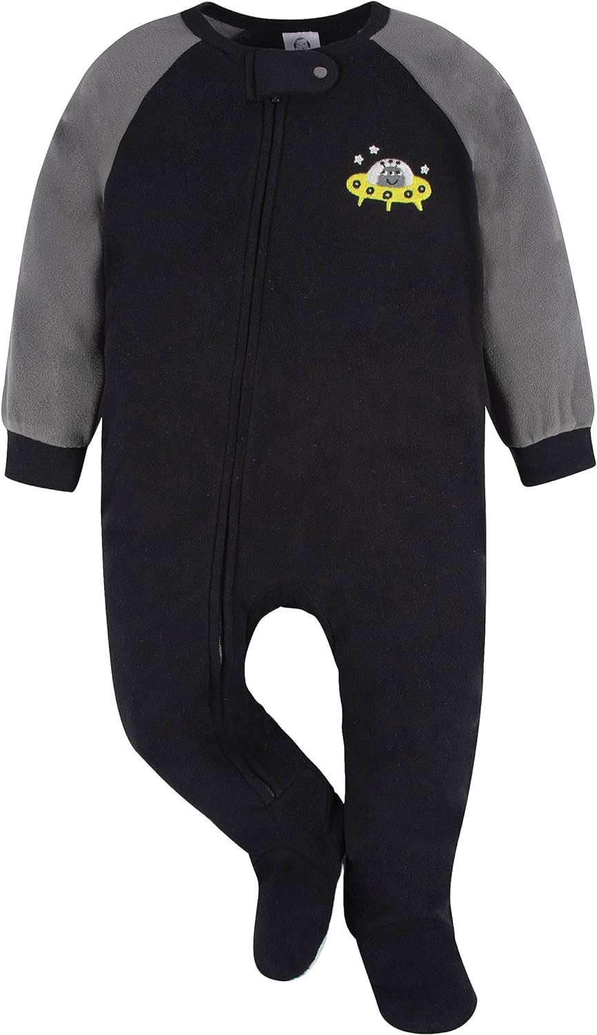 Gerber Baby Boys’ Toddler Loose Fit Flame Resistant Fleece Footed Pajamas 2-Pack(Grey Space)